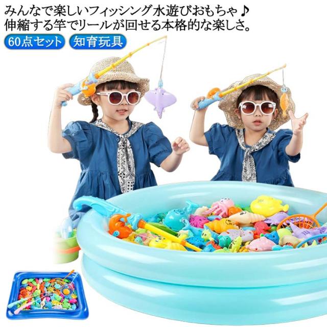 フィッシング プール 水遊び 男の子 磁気 おもちゃ つりゲーム 60点セット 魚釣り ゲーム お風呂 おもちゃ 知育玩具 子供 おもちゃ 女の子 マグネット 水遊び 水遊び 親子プレイゲーム プール付き 屋内 芝生遊び 玩具