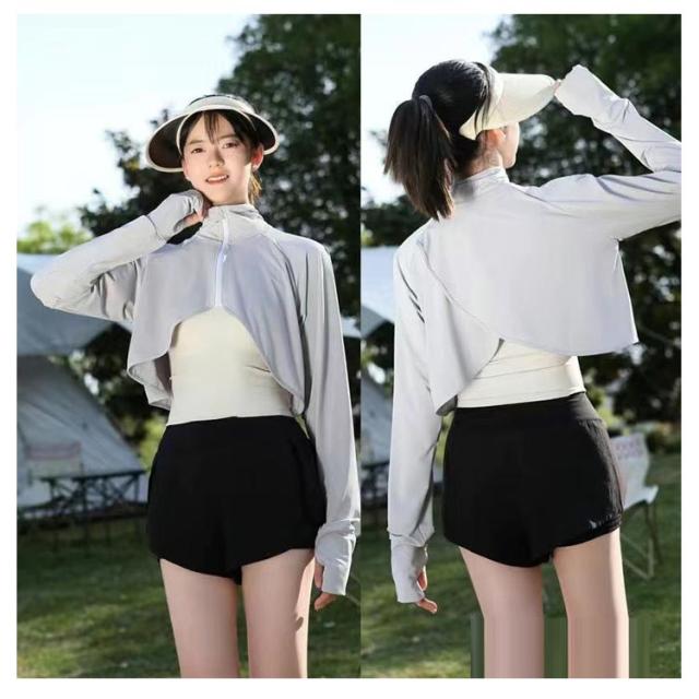 ポンチョ カーディガン UVカット レディース ハイネック マント風 接触冷感 ラッシュガード 長袖 アームカバー ショート丈 軽量 薄手 日焼け対策 指穴付き ボレロ パーカー風 ゆったり 体型カバー お洒落 夏用