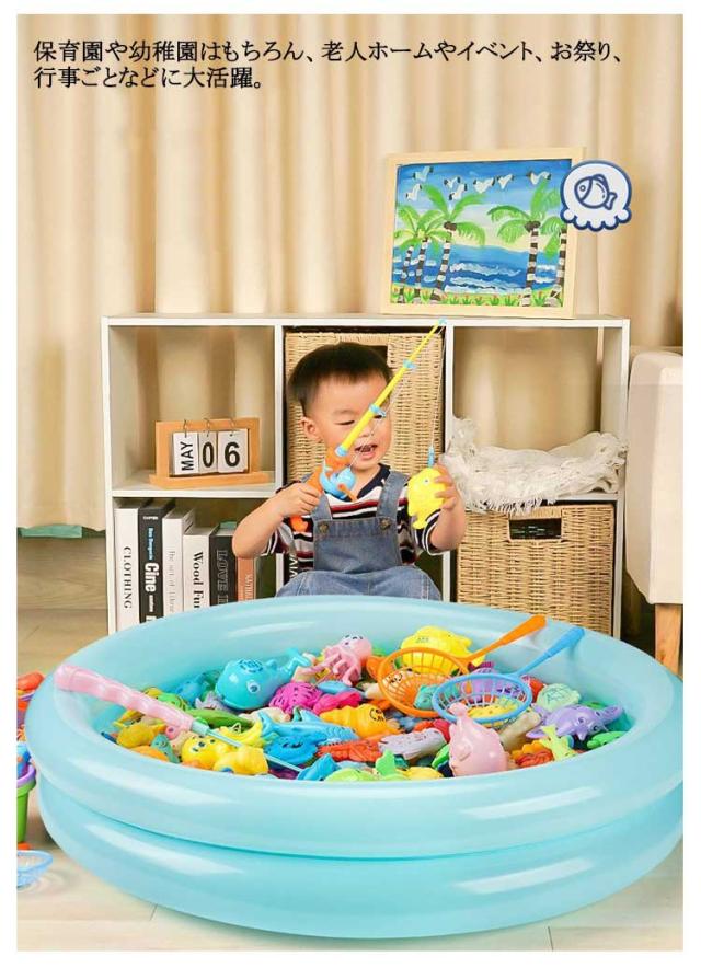 | 60点セット!みんなで楽しいフィッシング水遊びおもちゃ♪ 伸縮する竿でリールが回せる本格的な楽しさ。 伸縮タイプの竿と磁石でたのしく水遊びおもちゃ。 リールを回せば糸を垂らしたり巻き上げたりと本格的な釣りゲームを満喫できます。 子供の集中力、手と目の協調、および手の器用さを向上させることができます。 保育園や幼稚園はもちろん、老人ホームやイベント、お祭り、行事ごとなどに大活躍。 高品質のプラスチックと磁性材料で作られている、無毒で無味です。耐久性、耐衝撃に優れています。 | |