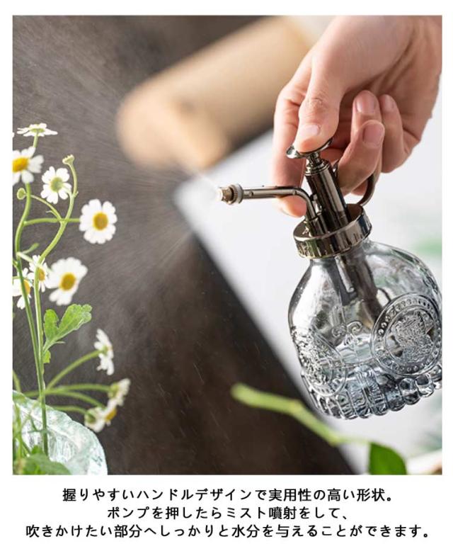 葉水 レトロ感 レトロ感 ミストスプレー ガラス 霧吹き おしゃれ ミストスプレーボトル スプレー スプレー容器 じょうろ 水やり 霧吹き 観葉植物 ガーデニング 園芸 お掃除 水やりボトル かわいい 高級感 インテリア雑貨 花 植物 透明 ディスペンサー