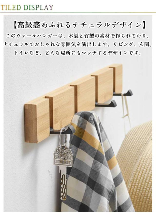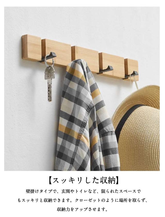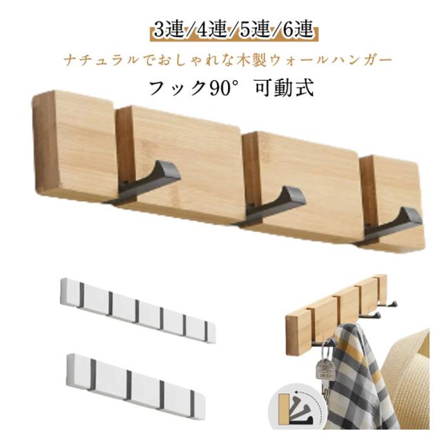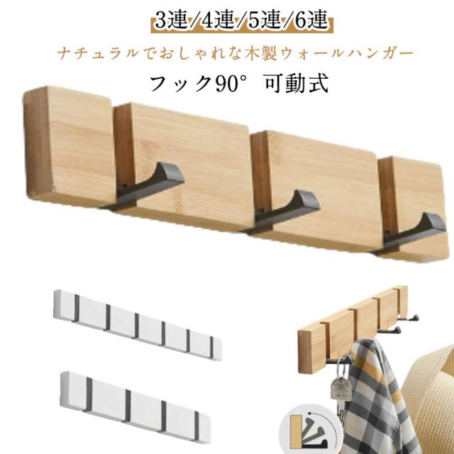 木製 ウォールハンガー 吊り下げ 壁掛けフック 可動式 コートハンガー 90°回転式 3連 4連 5連 6連 スーツ掛け コート掛け 竹製 ハンガーフック 帽子掛け 装飾 洋服掛け 壁掛けハンガー 玄関 スッキリ ナチュラル リビング トイレ おしゃれ 高級感 収納