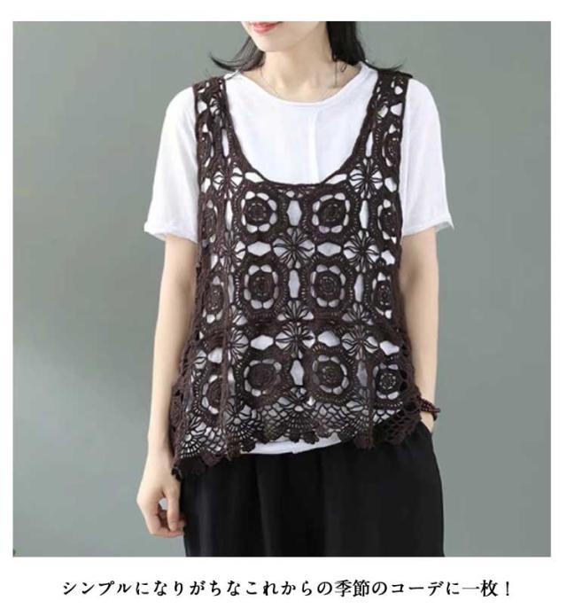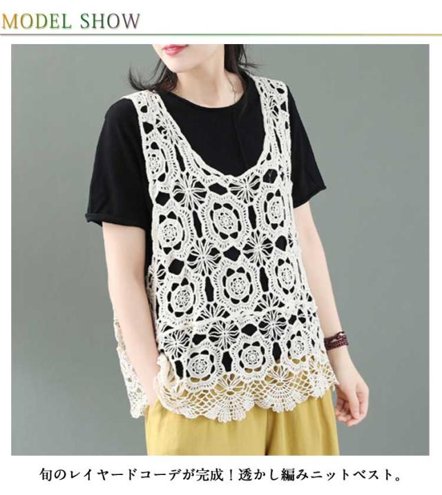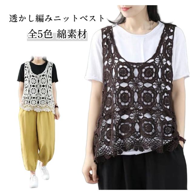 ベスト トップス 透かし編み 春 透かし編み 無地 かぎ編み ニットベスト フェミニン レディース Vネック 夏 レイヤード ベスト 大人 ニット きれいめ カジュアル レディース 花柄 重ね着 かわいい 体型カバー 夏服 オフィス ノースリーブ 総柄 通勤