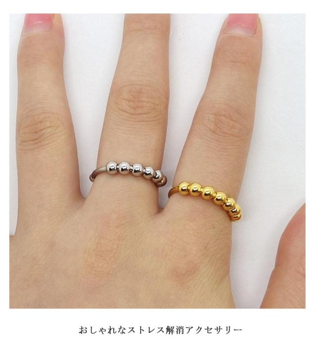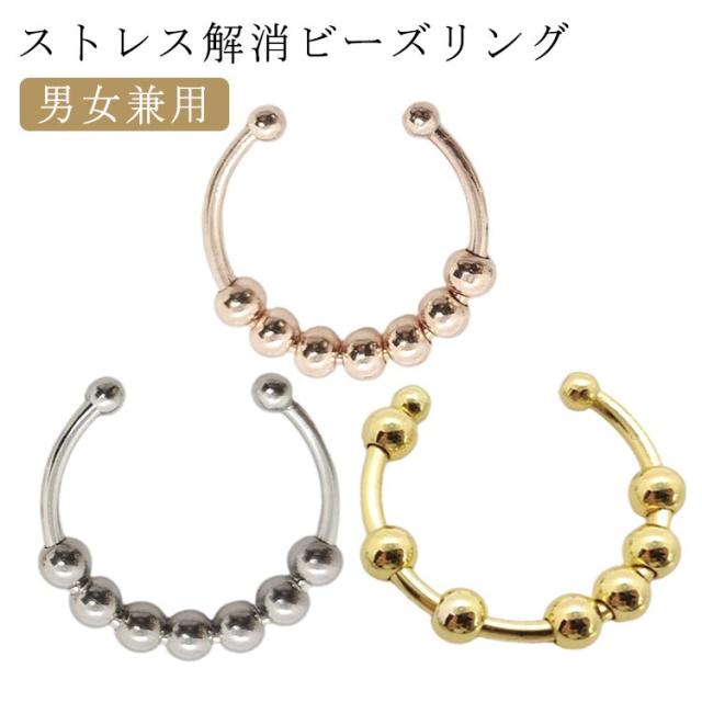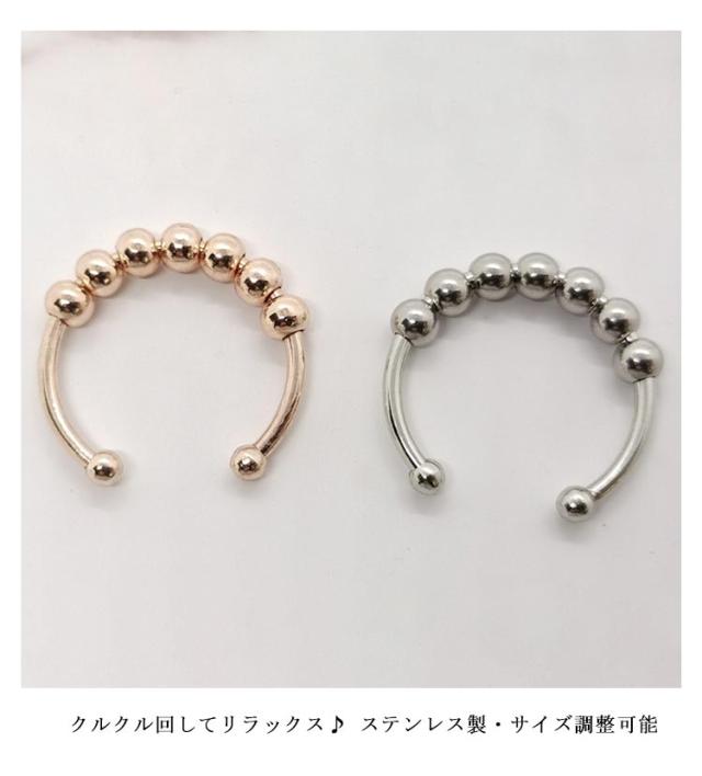 ビーズ指輪 調節可能 ストレス解消リング 可動ランナー ストレス解消リング ビーズ付き おしゃれ ステンレススチール 回転可能 ストレス解消指輪 不安リング ジュエリー アクセサリー プレゼント