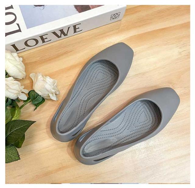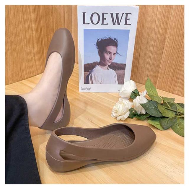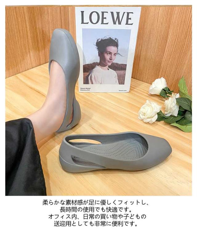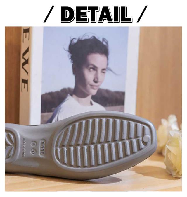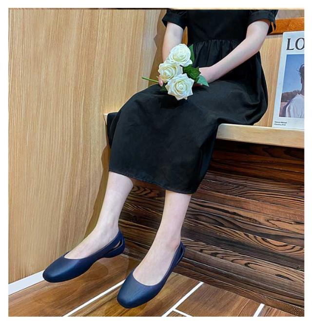 | 抜群の軽量性と快適な履き心地のEVAパンプス。 【抜群の軽量性と快適な履き心地】EVAラバー素材を使用しており、クロックスと同様の軽さと柔らかさが特徴です。軽量な設計により、足にかかる負担を軽減し、長時間の歩行でも疲れにくくなっています。フラットソールとローヒールの組み合わせで、足元の安定感があり、様々な場所でも快適に過ごせます。 【多用途でオールシーズン対応】春夏秋冬とオールシーズンで使える万能アイテムです。結婚式や発表会、入学・卒業式といったフォーマルなシーンから、普段のお出かけやオフィスでの室内履き、さらにはプールやビーチでのリゾートスタイルにもマッチします。シンプルなデザインは、どんな服装にも合わせやすく、1足持っているとどんな場面でも役立つ便利なアイテムです。 【女性らしいデザインと高い実用性】クロックスのような快適性を保ちながら、より女性らしいデザインに仕上げられています。フェミニンなワンピースやフレアスカートにもぴったりで、日常のカジュアルスタイルから特別な日のコーディネートまで幅広く対応します。さらに、フラットシューズのため、安定感があり、普段の通勤や通学、学校行事でのスリッパ代わりとしても大活躍します。柔らかな素材感が足に優しくフィットし、長時間の使用でも快適です。オフィス内、日常の買い物や子どもの送迎用としても非常に便利です。 シンプルでありながら洗練されたデザインは、カジュアルからフォーマルまで、どんなスタイルにも自然にマッチします。 | |