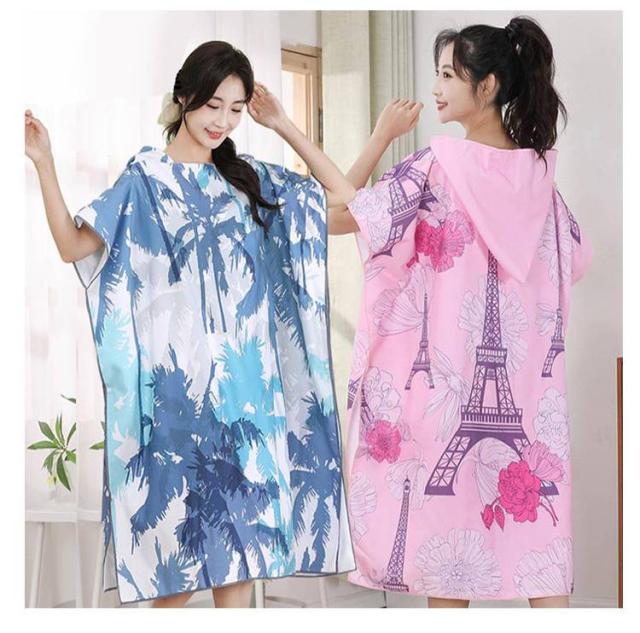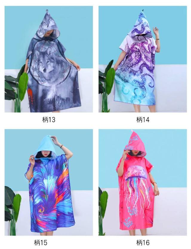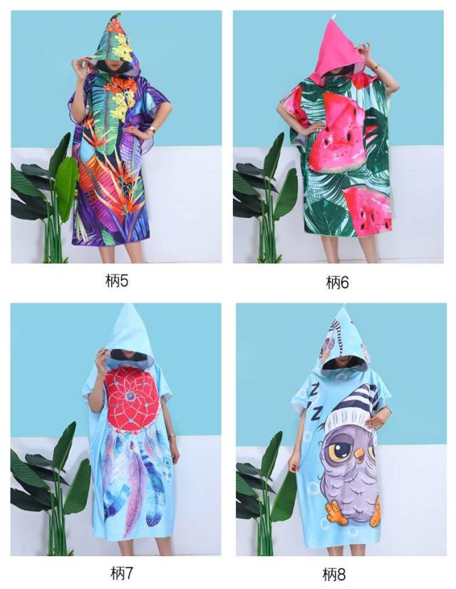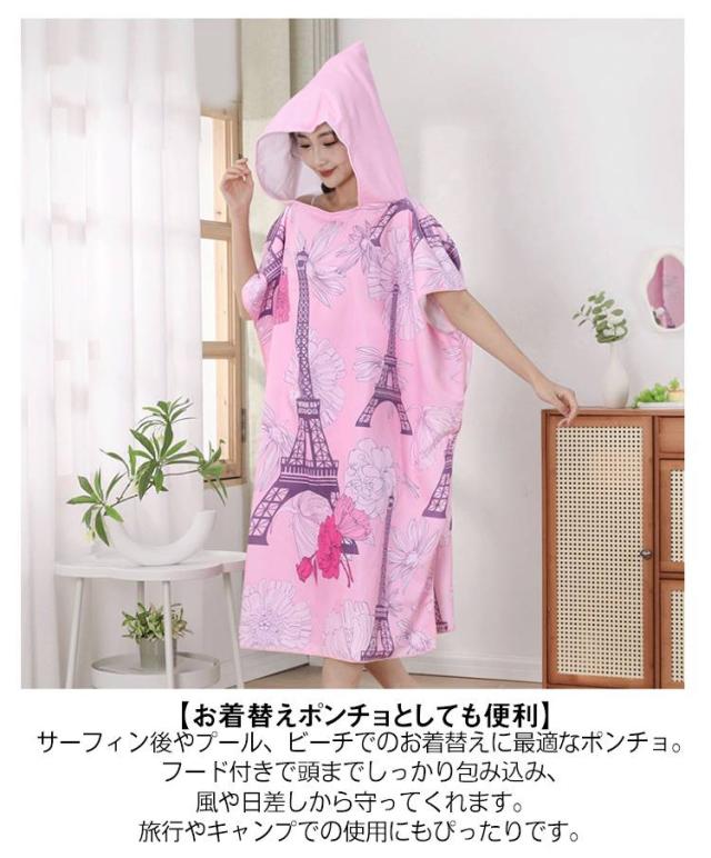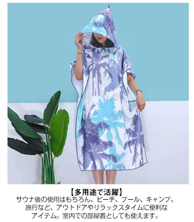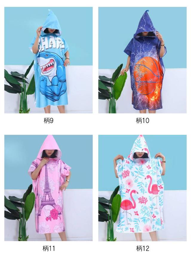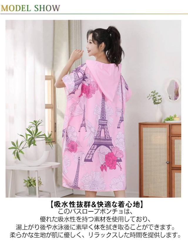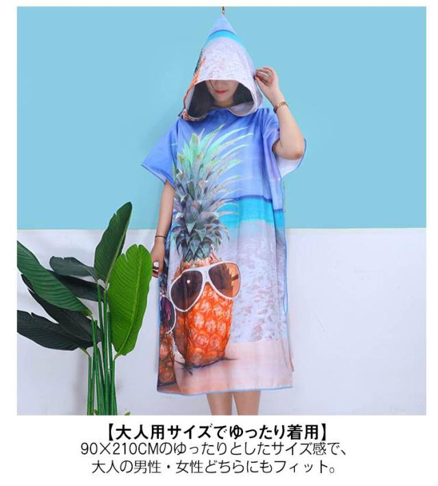 バスローブ メンズ ポンチョ 大人 フード付き 湯上がり バスローブ レディース サーフィン お着替えポンチョ タオルポンチョ 可愛い 90×210cm 総柄 吸水 サウナ 海 プール 旅行 キャンプ アウトドア 部屋着 大人用