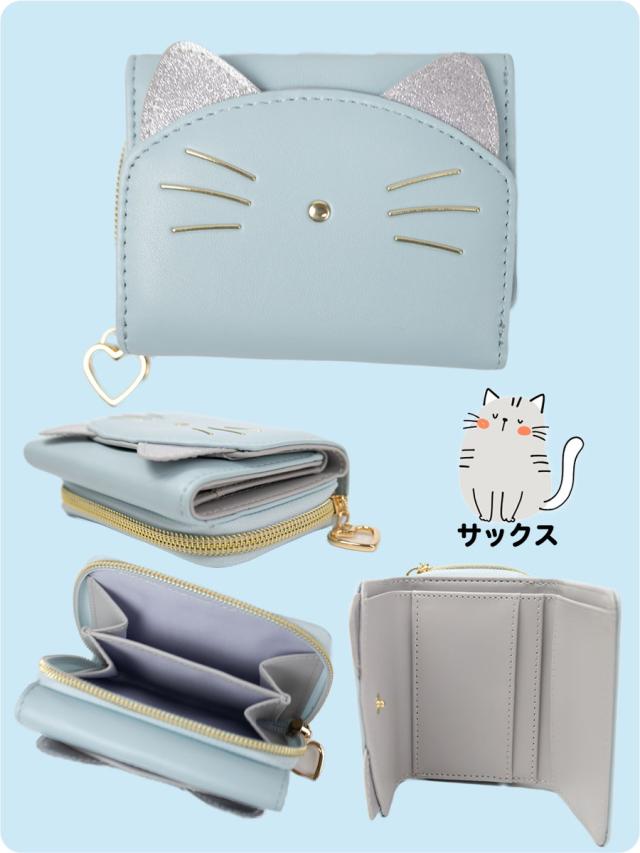 三つ折り財布 キッズ 女の子 ねこ 折りたたみ財布 キッズ財布 かわいい 10代 ミニ財布 女子 小学生 中学生 高学年 ウォレット 小銭入れ ファスナー 軽量 おしゃれ キラキラキャット コンパクト財布 JS-3802