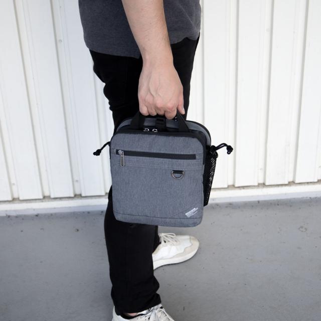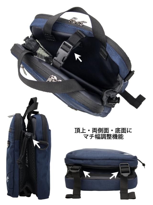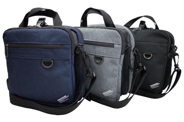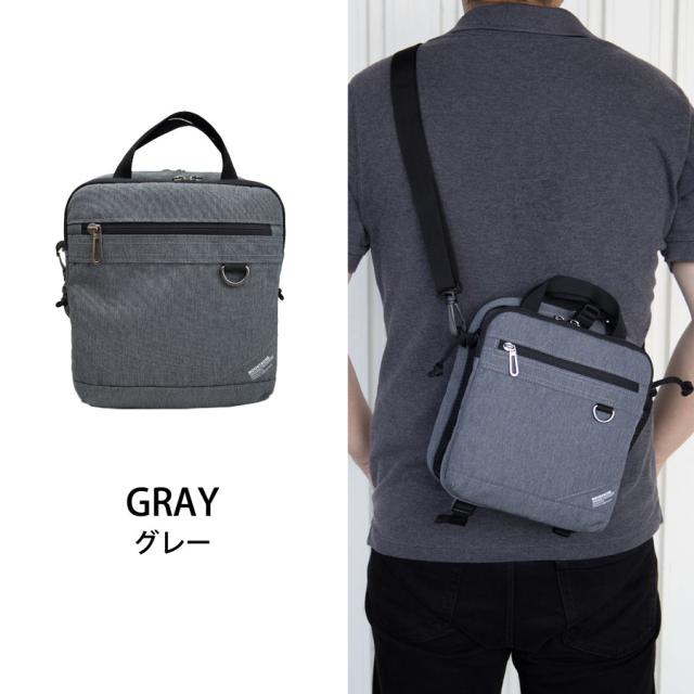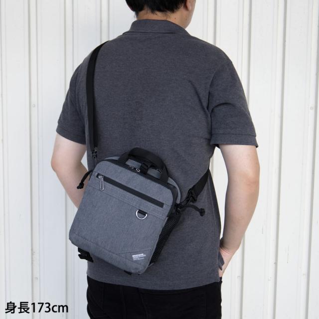 杢調ポリを使用した落ち着いたデザインの収納力に優れたショルダーバッグです。長財布やスマホなどの貴重品が収まるサイズでショルダーベルトを外して手提げとしてもお使いいただけます。