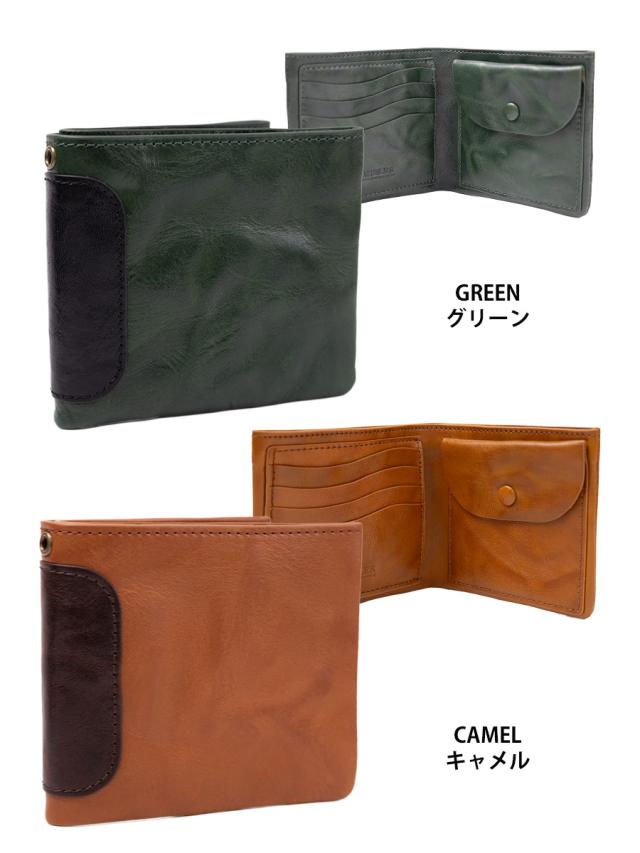 二つ折り財布 メンズ 本革 革 レザー ブランド 小銭入れ 軽量 薄型 シンプル おしゃれ ウォレット おりたたみ財布メンズ 札入れ やわらかい 牛革 緑 茶 黒 DOUBLES ダブルス KOM-1305 ギフト プレゼント