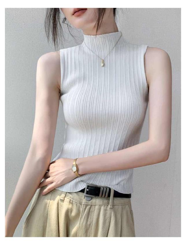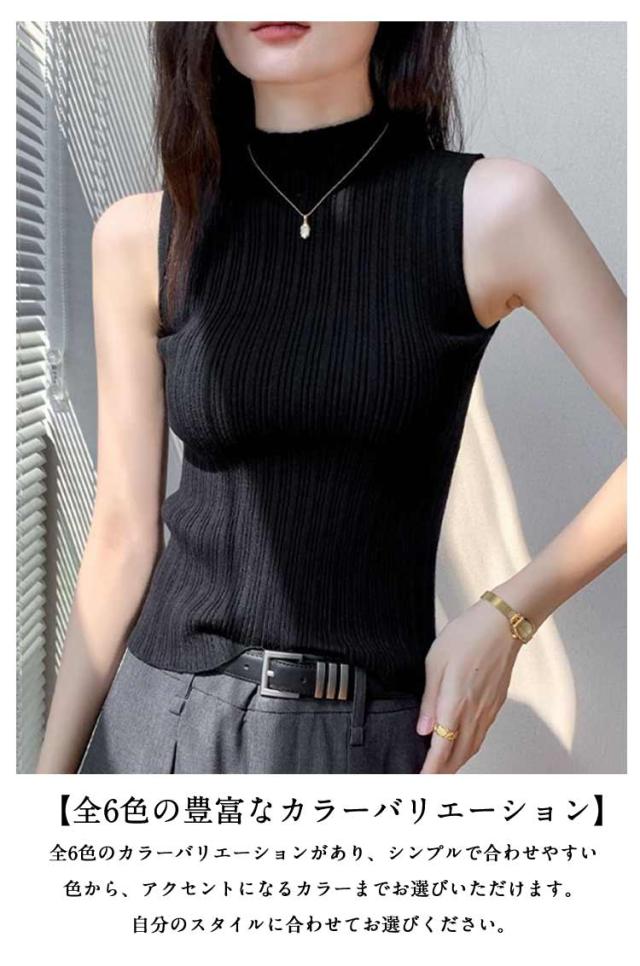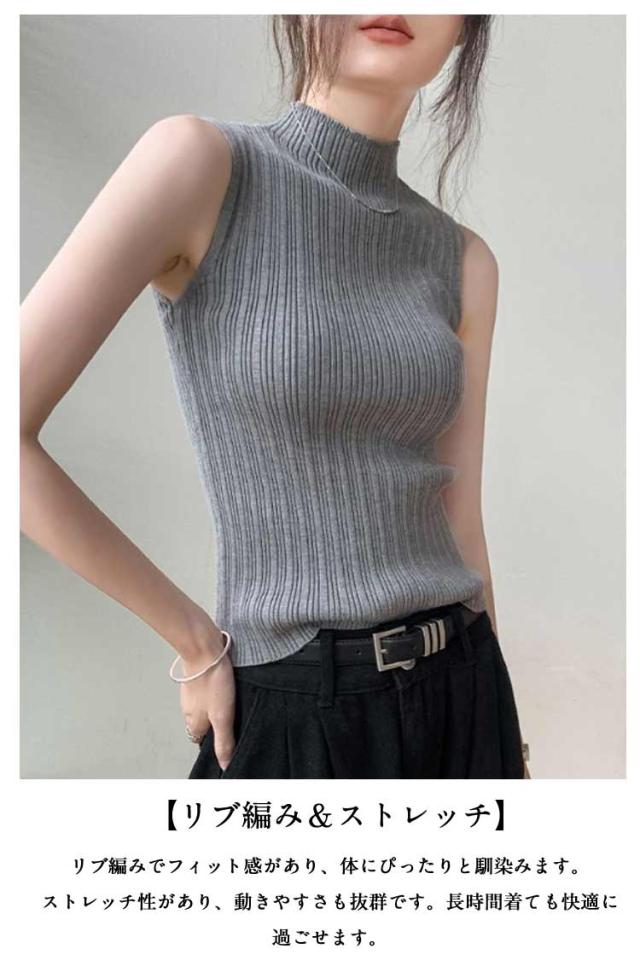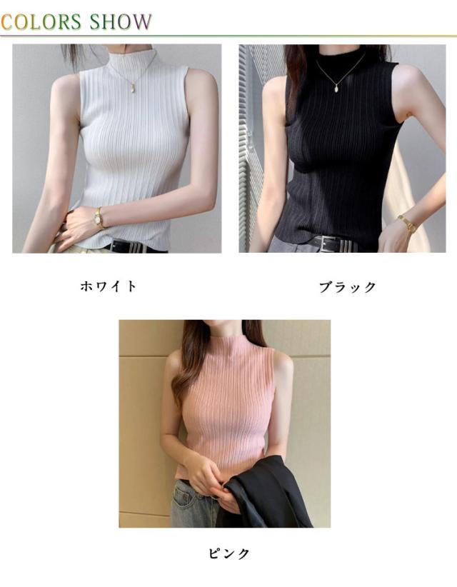 トップス ノースリーブ タンクトップ ストレッチ ハイネックニット 夏 レディース 通学 ハイネック ニットトップス インナー リブ プリーツ タートルネック カジュアル レイヤード ハイネックニット 通学 プリーツ 春秋 プリーツ 春 秋 夏 サマーニット
