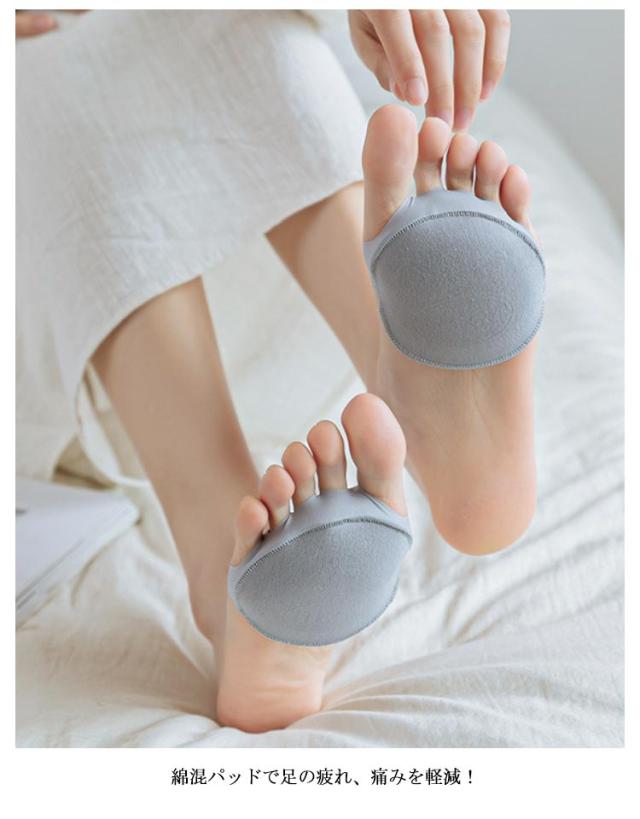 | 足裏保護インソールフットパッド。しっかり足裏を保護するやわらかフットパッドが登場!指なしタイプの足裏保護パッド付きカバーソックスです。 前足の裏をやさしく保護してくれる衝撃吸収クッション内蔵。 綿混パッドで足の疲れ、痛みを軽減! 長時間ヒールを履き続けることによる足裏の痛みを緩和します。 地面からの衝撃を吸収することで体重が均等に分散され、足裏の魚の目やタコイボ、底マメの痛みを軽減します。 パンプスやハイヒール履く際にも見えにくく脱げにくい指なしタイプ。 薄手のストッキングの下に履いても蒸れやもたつきが気になりません。 つま先やかかと部分が露出したサンダルやミュールにも合わせてご使用いただけます。 | |