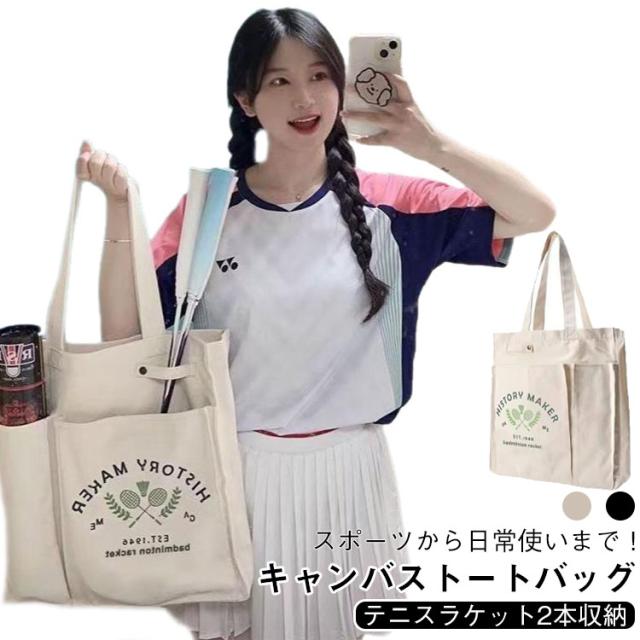 テニスバッグ テニスバッグ バドミントンバッグ バドミントンバッグ テニスバック ラケット 収納 ジムバッグ ラケット収納 テニスラケットバッグ キャンバストート 2本 スポーツバッグ トートバッグ 旅行バッグ 通勤 通学 軽量 ヨガ トレーニング レッスンバッグ ベージュ
