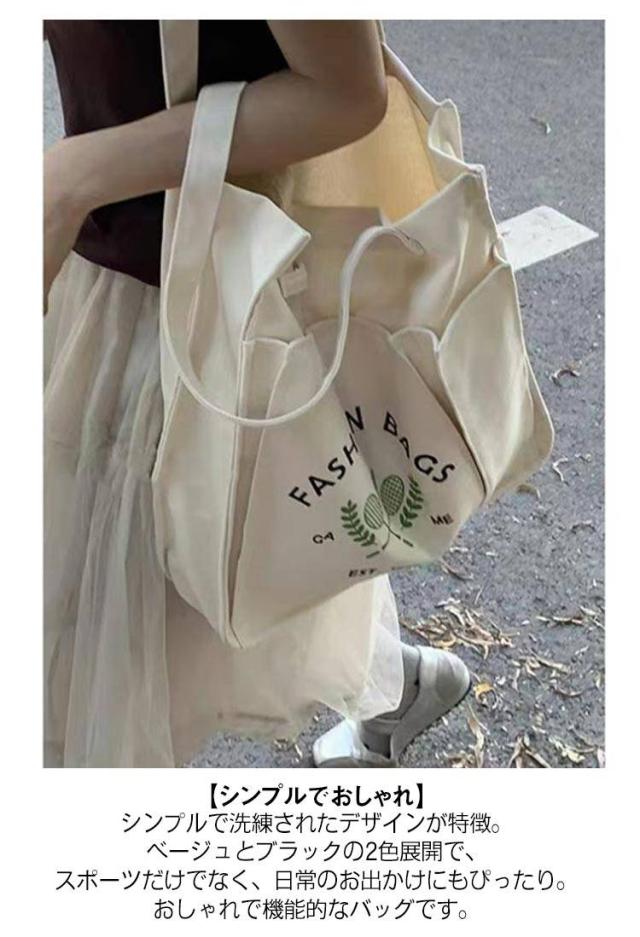 | 【大容量で収納力抜群】 このテニスバッグは、テニスラケットを2本収納できる大容量設計。さらに、ジム用品やスポーツウェア、トレーニンググッズなども収納可能です。これ一つでスポーツ活動に必要なアイテムをすっきり収納できます。 【軽量で持ち運び楽々】 軽量で丈夫なキャンバス素材を使用しており、持ち運びが非常に楽です。通勤や通学、ジム、旅行にも便利なバッグです。 【多用途に対応】 テニスやバドミントン、ヨガ、トレーニングなど、さまざまなスポーツやアクティビティに対応します。日常のレッスンバッグとしても使いやすいデザインです。 【シンプルでおしゃれ】 シンプルで洗練されたデザインが特徴。ベージュとブラックの2色展開で、スポーツだけでなく、日常のお出かけにもぴったり。おしゃれで機能的なバッグです。 【便利なトートバッグ型】 トートバッグ型のデザインで、物の出し入れが簡単。使い勝手の良さを追求し、スポーツバッグとしてだけでなく、旅行やレジャーにも最適です。 | |