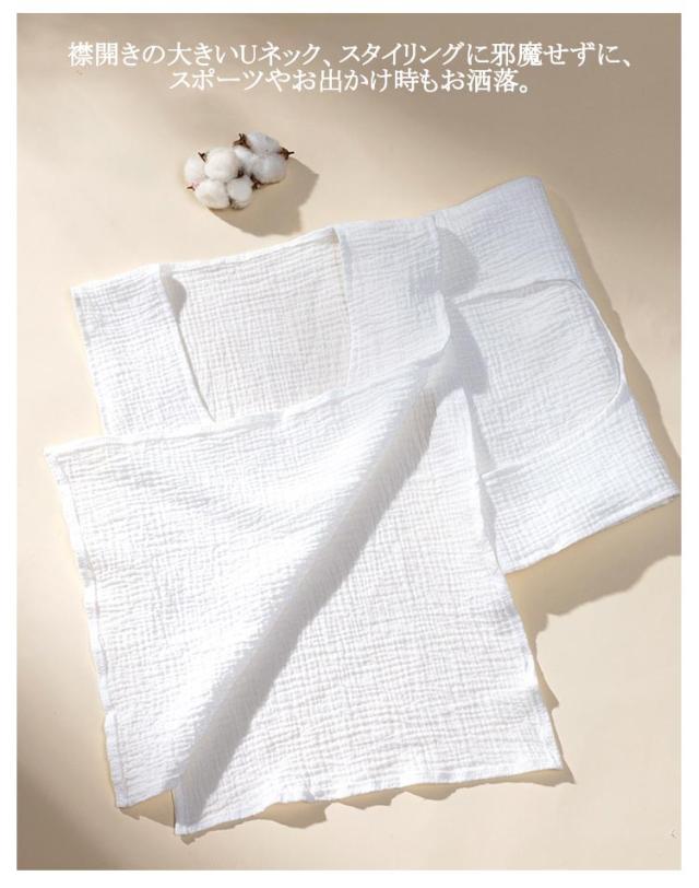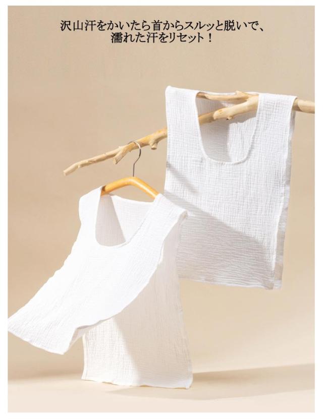 | 【汗取りインナー】 【サッと脱げる!3枚セット】 服を着たままサッと脱げる♪ 沢山汗をかいたら首からスルッと脱いで、濡れた汗をリセット! 吸水力の高い綿のダブルガーゼ、汗をしっかり吸込みます。 ふんわり柔らかい優しいガーゼ生地、着心地も◎ お出かけや通勤通学で背中の汗染みが気になる、 汗をかいた後背中が冷たいなど汗で悩まされる様々なシーンに大活躍する汗取りインナーです。 襟開きの大きいUネック、スタイリングに邪魔せずに、スポーツやお出かけ時もお洒落。 | |