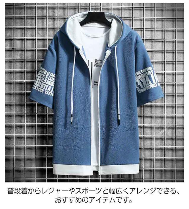 パーカー トップス 春夏 プリント スウェットパーカー 半袖 メンズ 前開き メンズ フード付き トレーナー おしゃれ カジュアル 大きいサイズ 薄手 メンズファッション パーカートップス Tシャツ スポーツウエア 全6色 20代