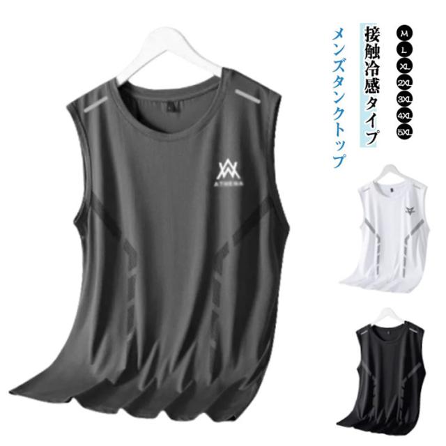 タンクトップ 丸首 夏用 黒 通気性 M-5XL タンクトップ メッシュ 軽量 ノースリーブ グレー 接触冷感 吸汗速乾 男性用 大きいサイズ 白 tシャツ トレーニング インナーシャツ ルームウェア ゆったり アイスシルク素材
