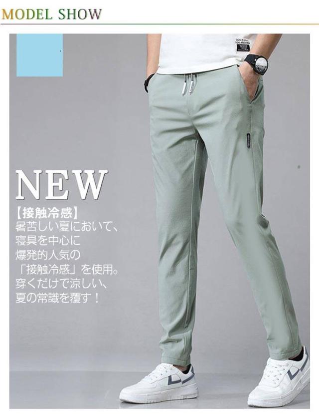 接触冷感 パンツ 夏 涼感 ズボン ボトムス 軽量 ストレッチ メンズ ロングパンツ 速乾 薄手 涼しい レギパン 接触冷感 スウェットパンツ イージーパンツ エアパンツ エアパン 部屋着 チノパン 夏服 アイスシルクパンツ 大きサイズ 作業着
