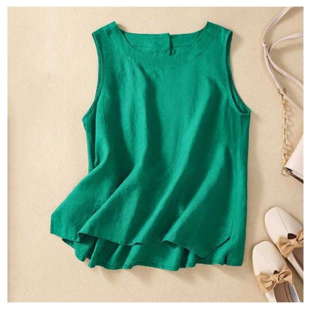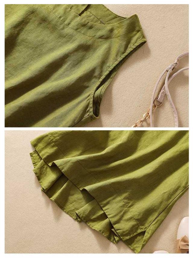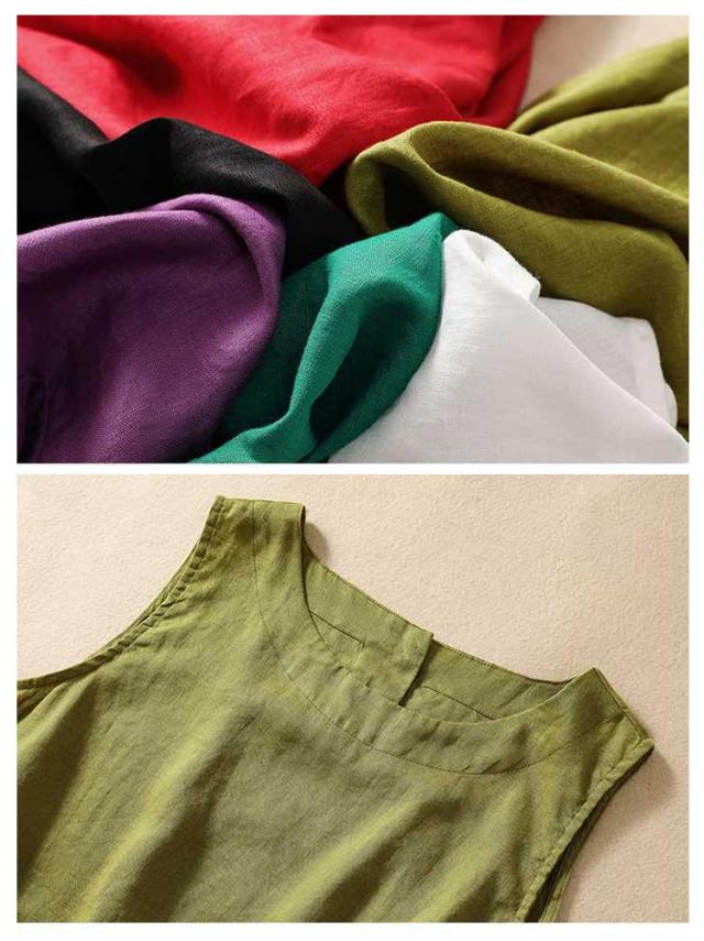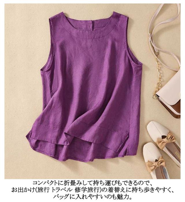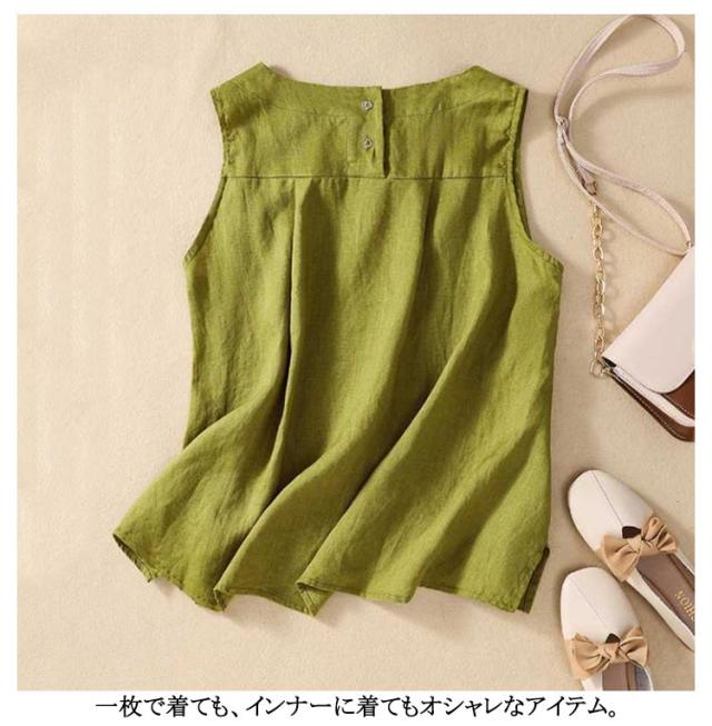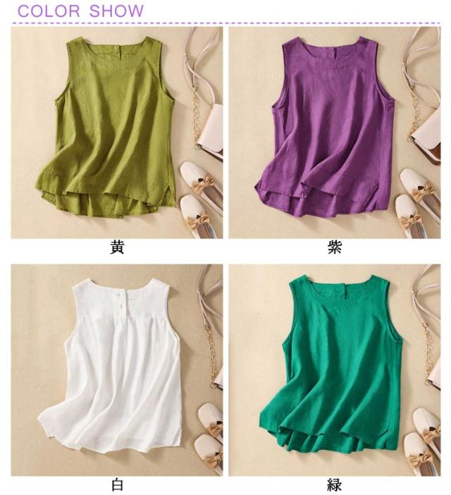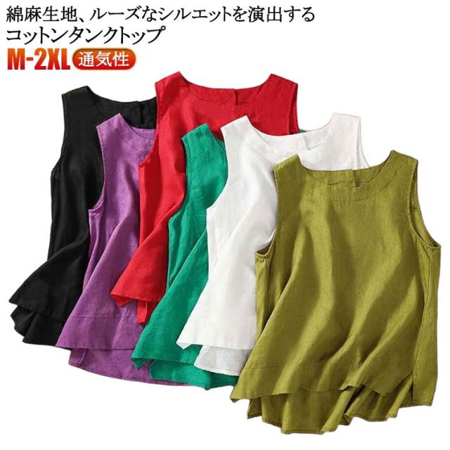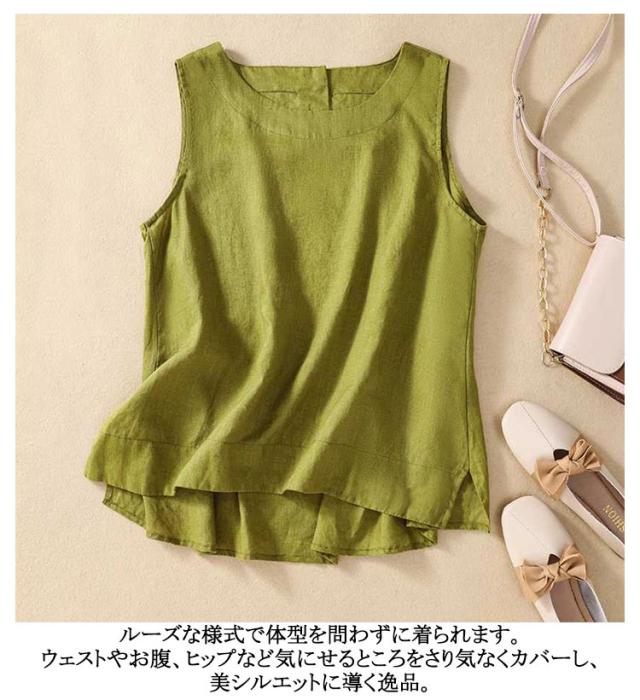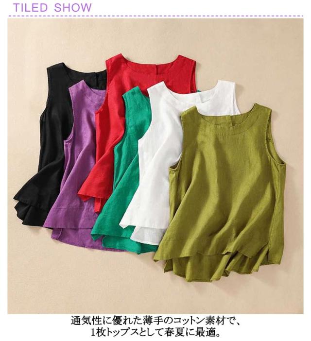 トップス 女性 ノースリーブ レイヤード 袖なし タンクトップ Uネック リネン 綿 麻 ノースリ 体型カバー ゆったり ブラウス 麻 コットン コットンリネン 綿 重ね着 レディース レディース 麻 春 夏 レディースファッション サマータンク