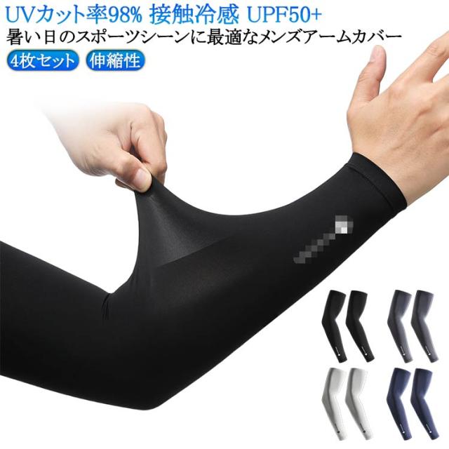 アームカバー 自転車 大きいサイズ 日焼け対策 UVカット UPF50+ 男用 4枚セット ロング アームカバー 野球 冷感アームカバー メンズ 接触冷感 UV ゴルフ アウトドア 紫外線対策 接触冷感 ズレ落ち防止 滑り止め 軽量 薄手 フィット感 ストレッチ 伸縮性 吸湿性