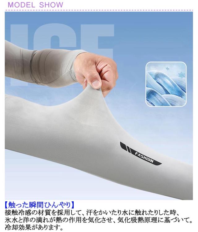 | UVカット率98% 接触冷感 UPF50+ 暑い日のスポーツシーンに最適なメンズアームカバー 【触った瞬間ひんやり】接触冷感の材質を採用して、汗をかいたり水に触れたりした時、氷水と洋の満れが熱の作用を気化させ、気化吸熱原理に基づいて。冷却効果があります。 【UPF50+紫外線遮断率?98%で肌を守る!】日差しの強い時期の紫外線から肌を守ることが期待できる日焼け対策として!野外での活動にもおススメ! 【ズレ落ち防止】引き締めるデザイン、手や肘の曲げ伸ばしによるずリ上がりやずり落ちりの心配がなし! 【伸縮性・通気性抜群】伸縮性にも優れ多様な腕にもフィット◎ さらに通気性も抜群で速乾性も抜群なので快適に着用できます! 【毛玉になりにくい】高品質なアイスシルク生地を使用することで引っかかりによる毛玉を防止します。 【色んな場面で使いやすい!】シンプルなデザインで普段使いはもちろんスポーツ等様々なシーンで使いやすい!夏場でも野外での活動快適に過ごせるようサポート! | |