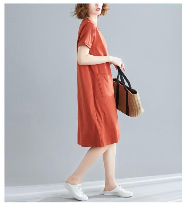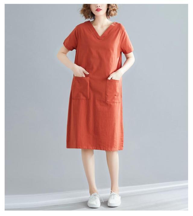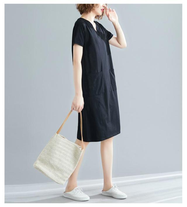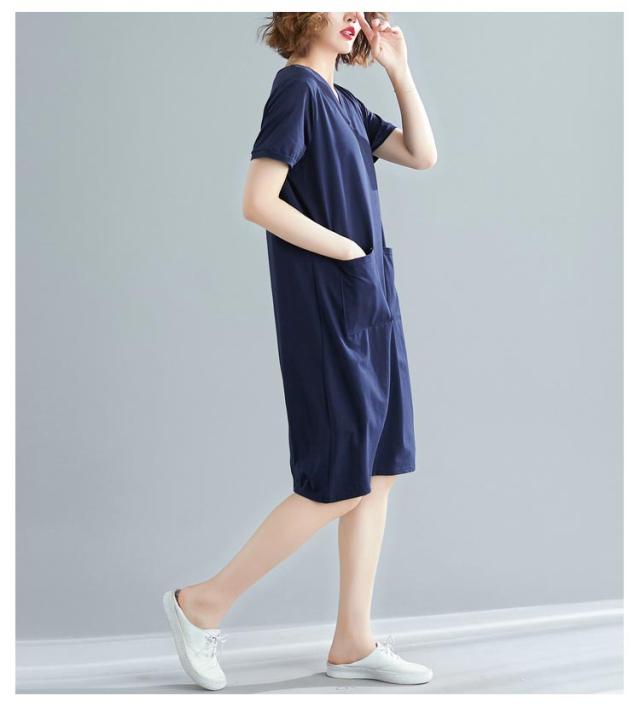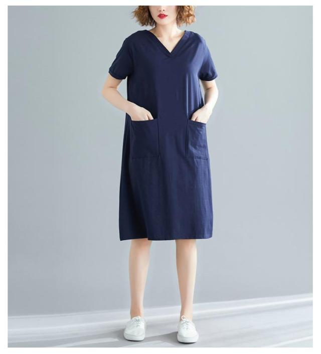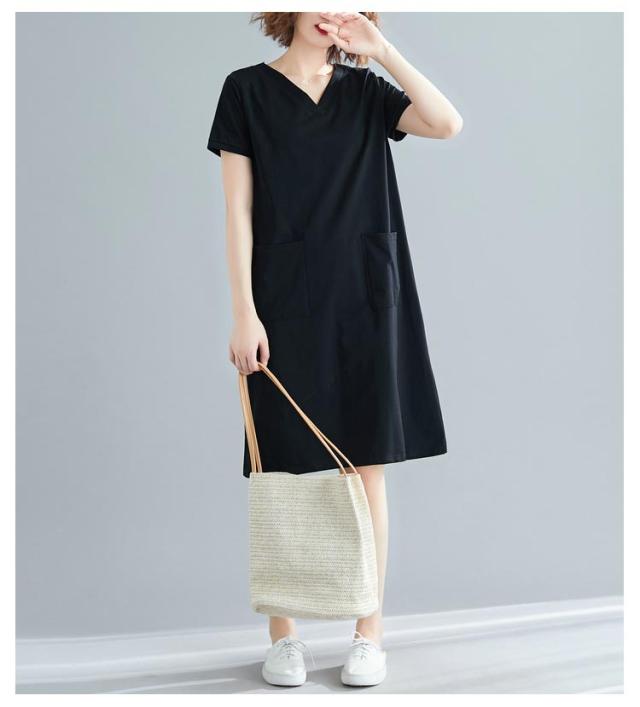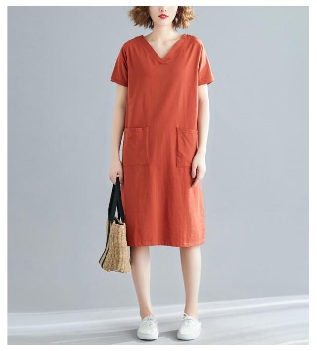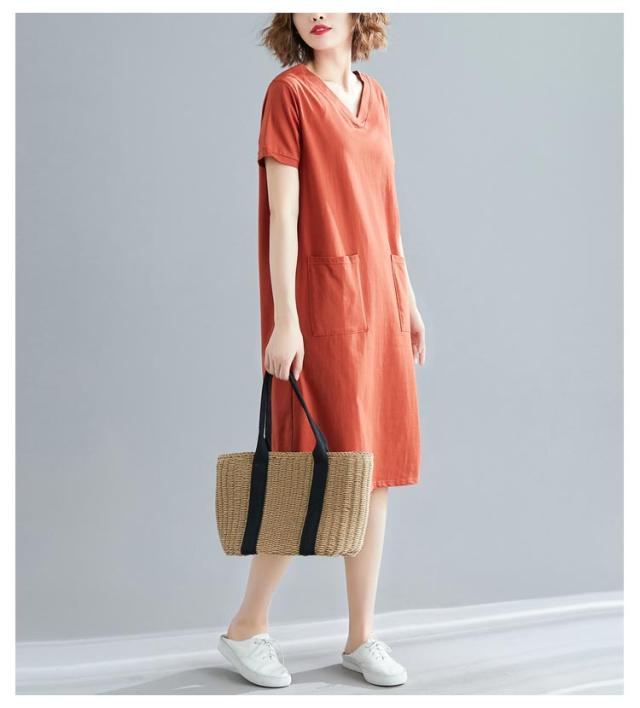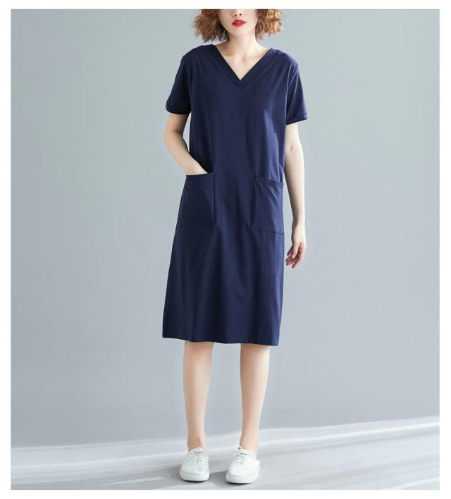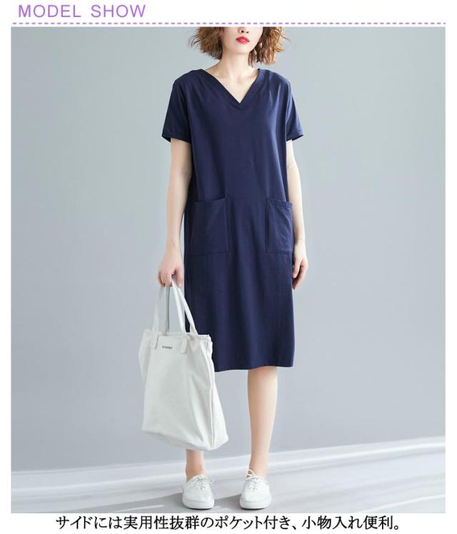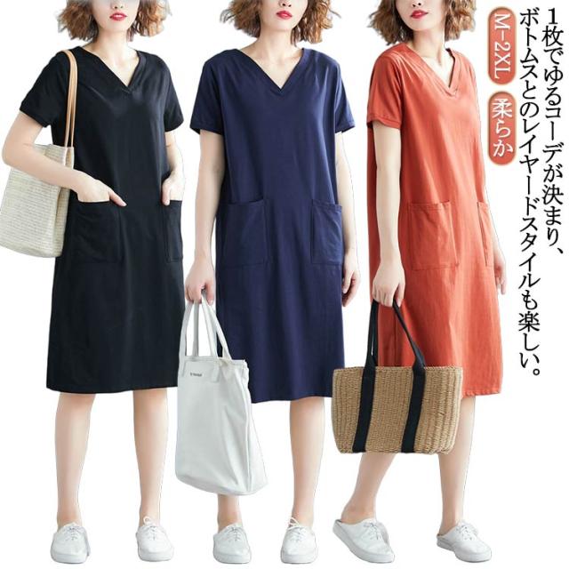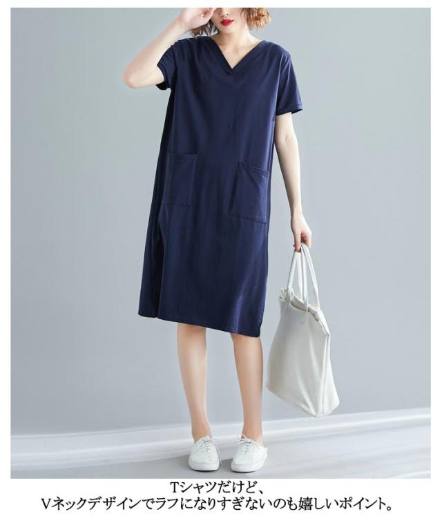 半袖 tシャツワンピース tシャツワンピース 大きめポケット 半袖 ワンピース Vネック ロングtシャツ 無地 柔らか きれいめ 夏 大きいサイズ 部屋着 シンプル ポケット付きワンピース