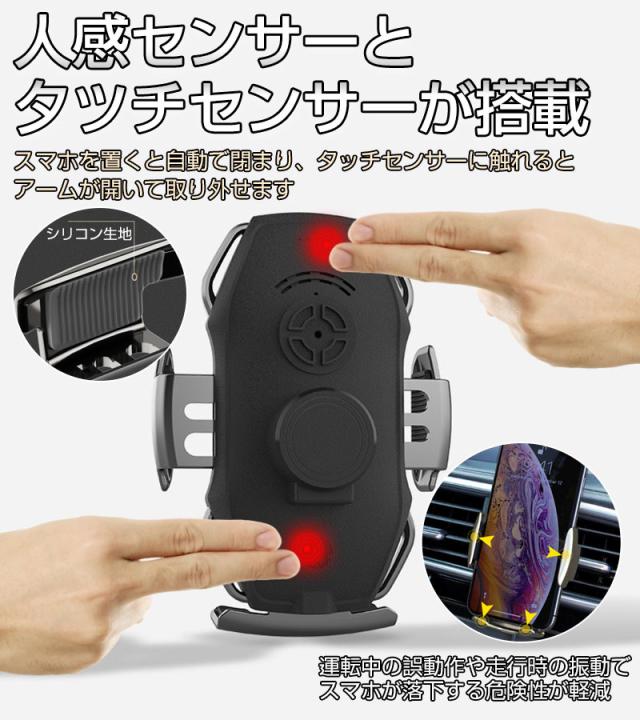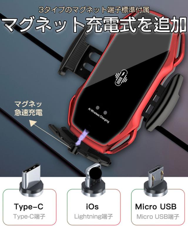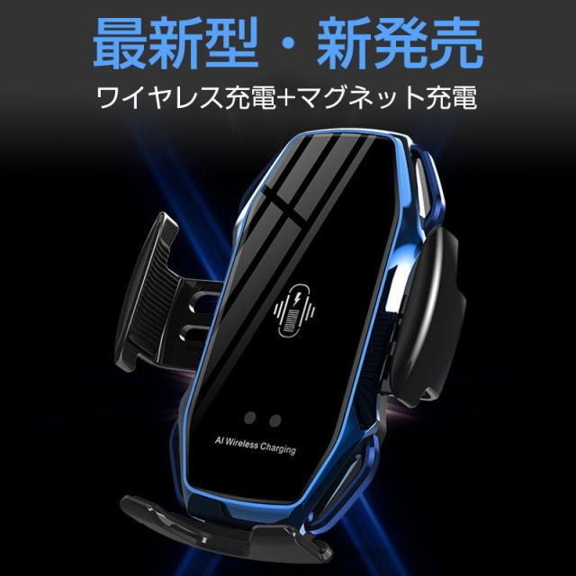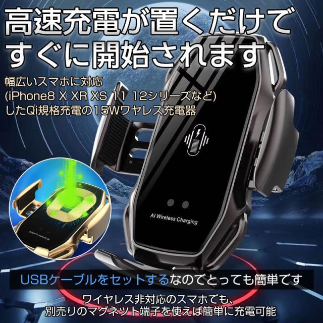 ワイヤレス 充電器 車 車載 2タイプ スマホホルダー 置くだけ充電 QI 自動開閉式 スタンド iPhone 貼り付け 吸盤 15W マグネット車用