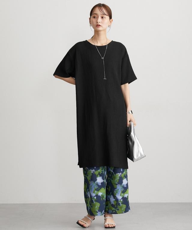 ■デザイン 一枚にも重ね着にも!程よいゆったりなサイズ感で体型カバーにもおすすめなアイテムです。 ■素材 カットソー素材で伸び感のある楊柳素材を使用。表面感のある素材なので下着の線をひろいにくくしわが目立ちにくいのでお手入れらくちん! ■おすすめのスタイリング 5分袖なので一枚でさらっと着てもすぐにさまになるコーデが完成します。シンプルなので小物や靴できれいめな合わせがおすすめです。ボトムに柄パンツを合わせてカジュアルにも着まわせる便利なアイテム。