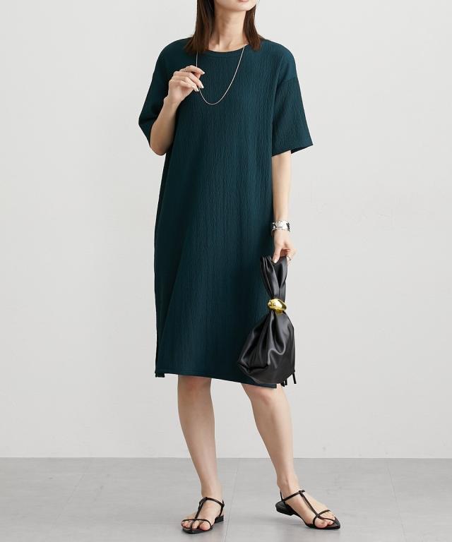 ワンピース ロング マキシ レディース 楊柳ゆるシルエット5分袖 秋 ひざ下 | M | ニッセン nissen