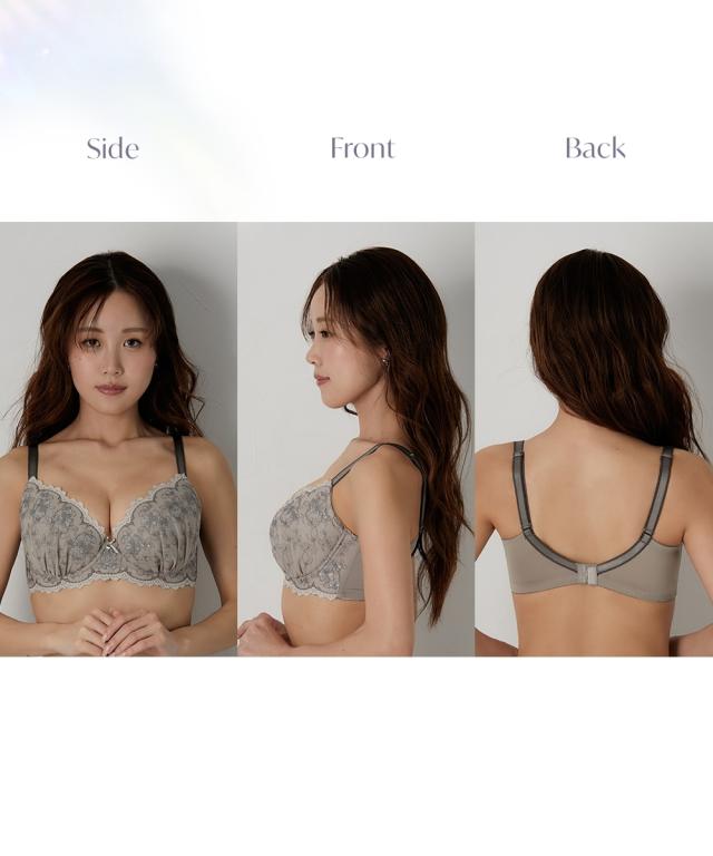 グラマーバストさんのためのデザインブラジャーシリーズ、高嶺のブラ。 かわいいも着け心地もあきらめたくない、そんなあなたのためのシリーズ。 愛らしい小花刺しゅうがバストを彩るブラジャー。 落ち着いた印象のグレーとおとなかわいいピンクの2色展開。 【ポイント】 ・刺しゅうがバストを華やかに魅せてくれます。 ・カップ裏のサイドパネルでバストの横流れを防止。 ・パッドポケット付き。お手持ちのパッドを入れてボリューム調整が可能。 ・バックU字スタイルで安定感のある着け心地。 ・ストラップ太めで肩の負担を軽減してくれます。