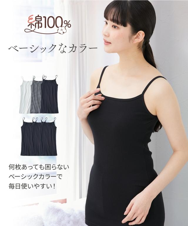 綿100%ロング丈キャミソール3枚組