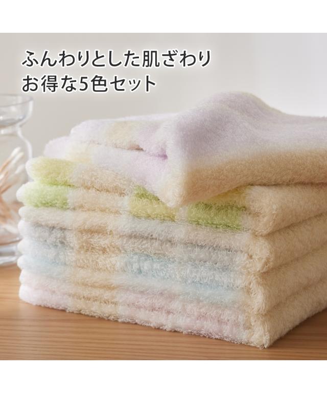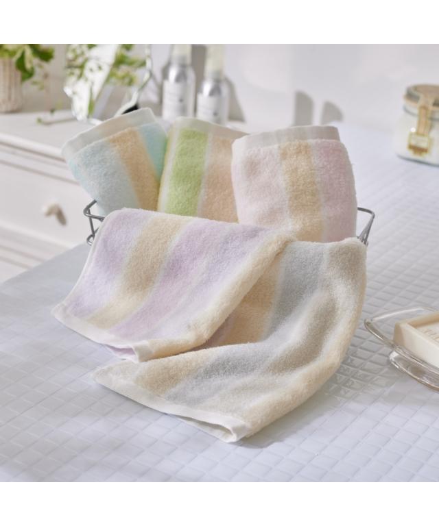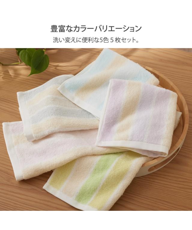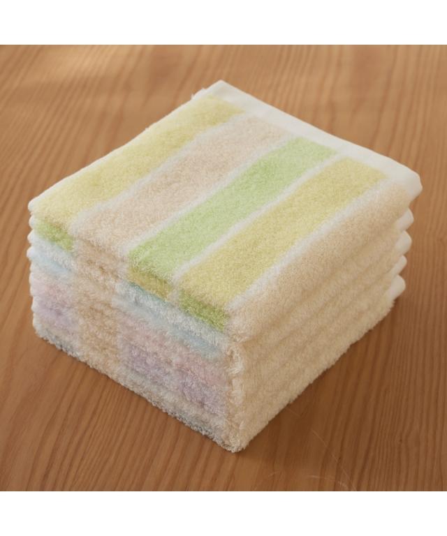 無撚糸めちゃふわストライプ ハンドタオル 5色 5枚セット(34×35)