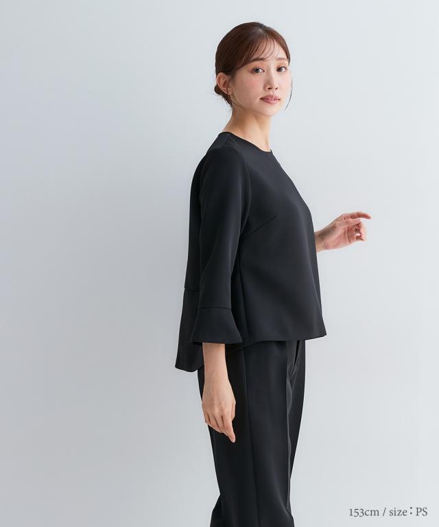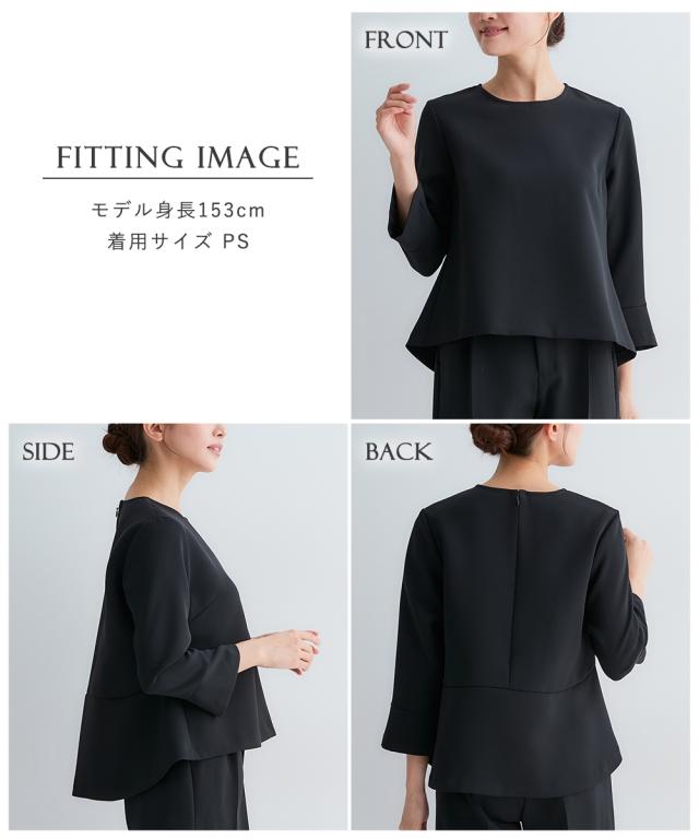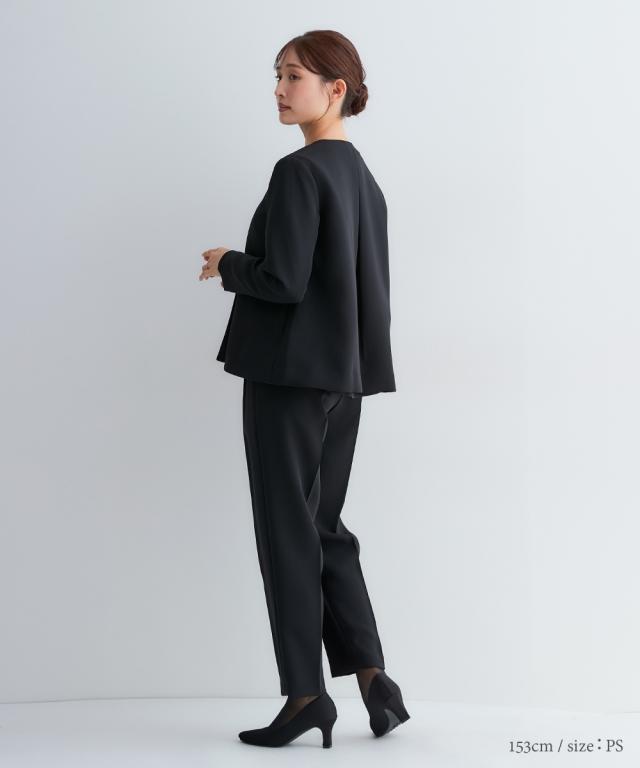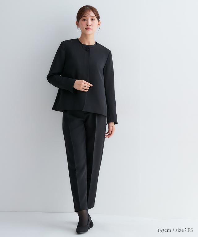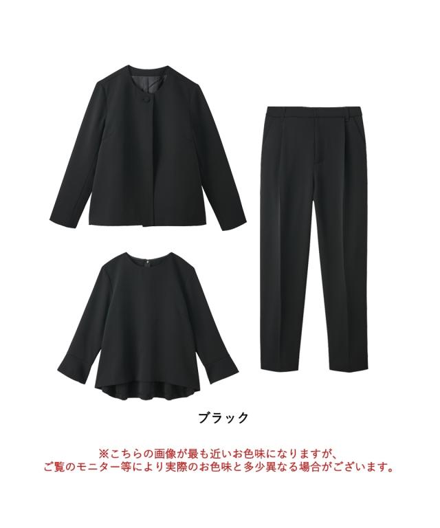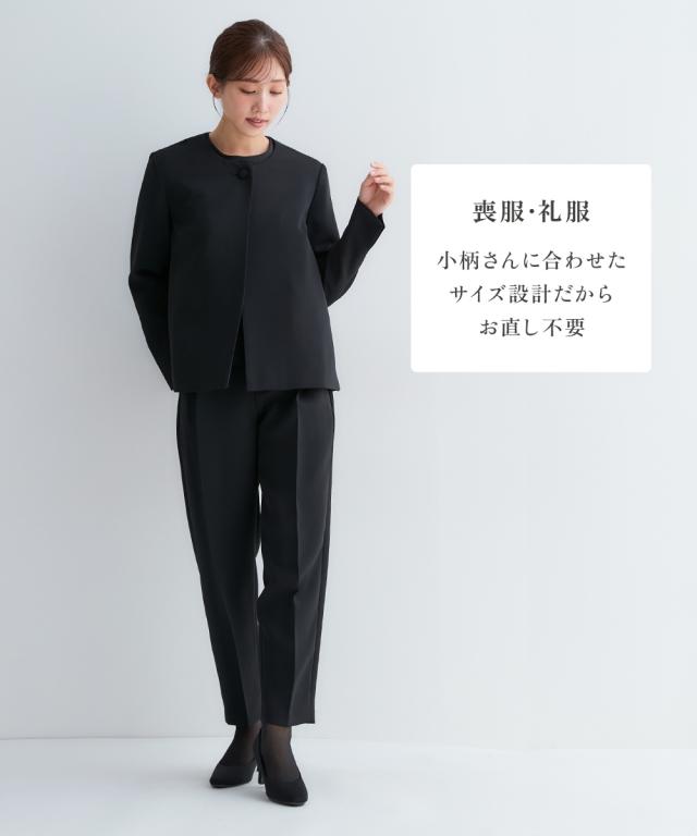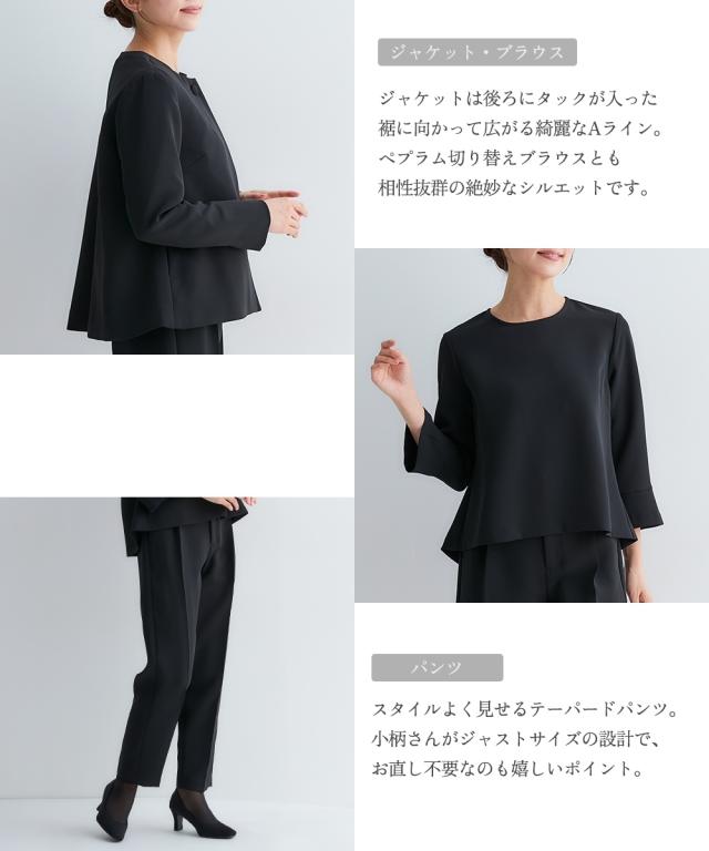 小さいサイズ 【喪服・礼服】3点セットアップスーツ(Aラインジャケット+ペプラムブラウス+テーパードパンツ) 低身長さん・小柄女性