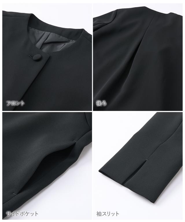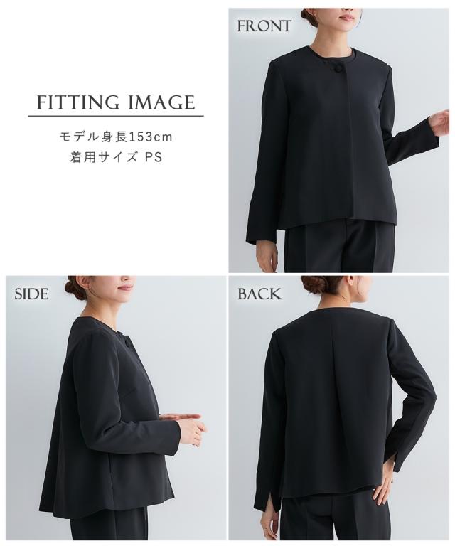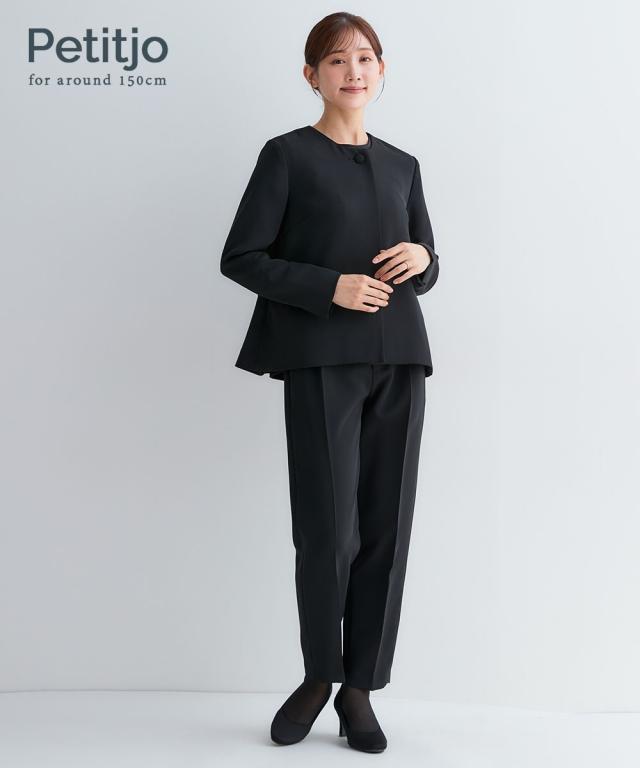 【150cm前後の小柄・低身長女性向けブランド-プッチージョ-】 小柄な方特有のお悩みを解決するこだわり設計の喪服・礼服です。 ジャケット、ブラウス、パンツがセットになっているので、それぞれ単品でも着回しも。 ■ジャケットはAラインでシルエットを綺麗に見せてくれます。 くるみボタンがアクセントになった女性らしいデザイン。 ブラウスは後ろに切り替えが入ったペプラムシルエット。 ジャケットとブラウスは後ろの丈が長めのデザインなのでお尻まわりをカバーしてくれます。 パンツはセンタープレス入りで上品に見せてくれるテーパードシルエット。 ジャケット・パンツには小物を収納できる便利なポケット付きです。 これ1枚持っているだけで重宝します。 ■対応着用シーン 【お通夜】【葬儀】【告別式】【結婚式】【お食事会】【お呼ばれ】【参観日】【卒業式】など幅広いシーンで着用いただけます。 ■対応着用シーズン 夏はブラウスのみで、冬はジャケットを羽織っていただくことで、オールシーズン着用可能です。