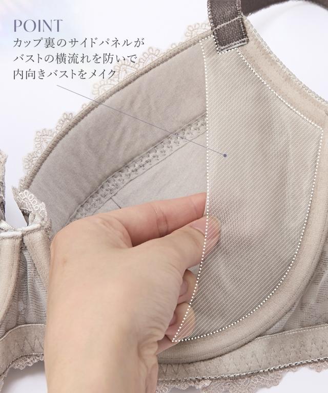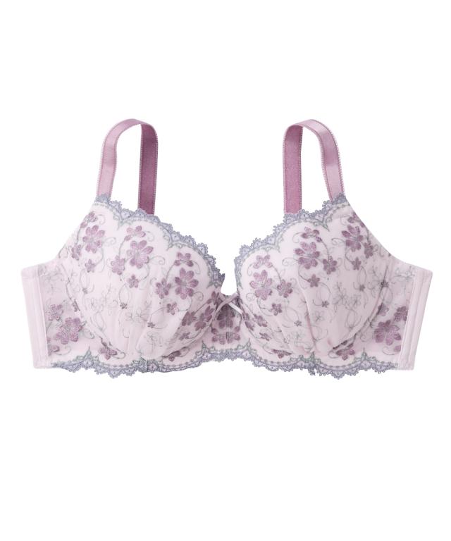 グラマーバストさんのためのデザインブラジャーシリーズ、高嶺のブラ。 かわいいも着け心地もあきらめたくない、そんなあなたのためのシリーズ。 愛らしい小花刺しゅうがバストを彩るブラジャー。 落ち着いた印象のグレーとおとなかわいいピンクの2色展開。 【ポイント】 ・刺しゅうがバストを華やかに魅せてくれます。 ・カップ裏のサイドパネルでバストの横流れを防止。 ・パッドポケット付き。お手持ちのパッドを入れてボリューム調整が可能。 ・バックU字スタイルで安定感のある着け心地。 ・ストラップ太めで肩の負担を軽減してくれます。