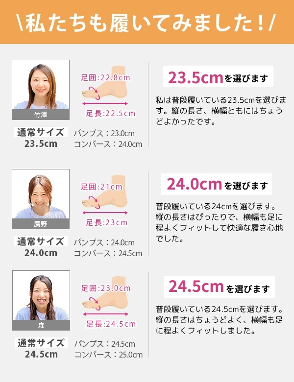 取り扱いサイズ:23cm 23.5cm 24cm 24.5cm 25cm