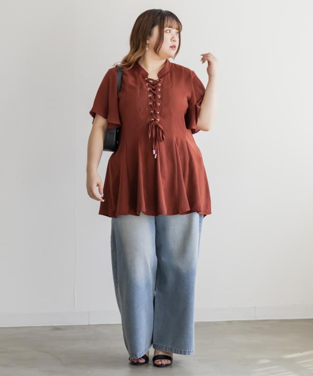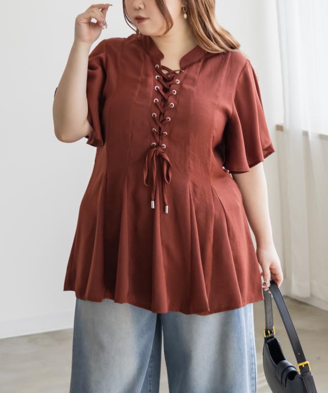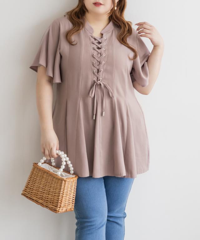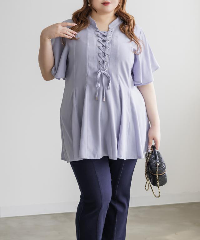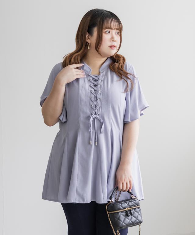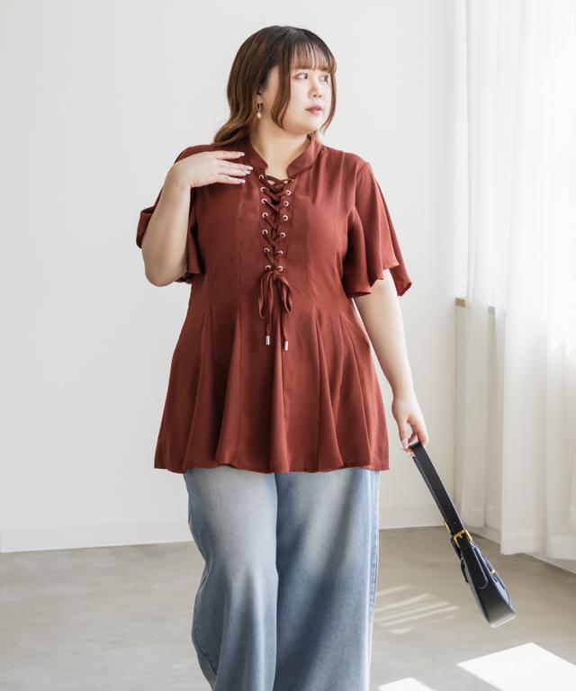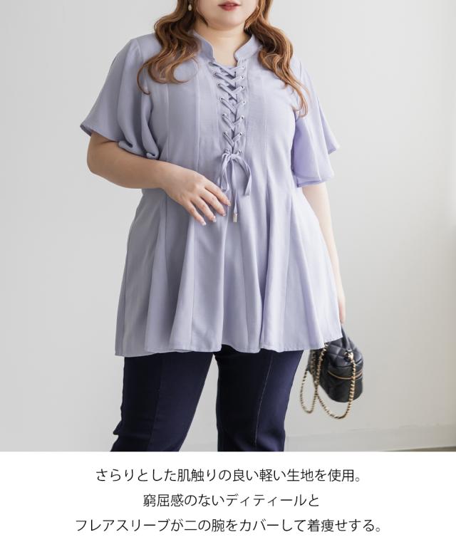 大きいサイズ/レディース/LL/3L/4L/CLETTEオリジナルレースアップフレアブラウス