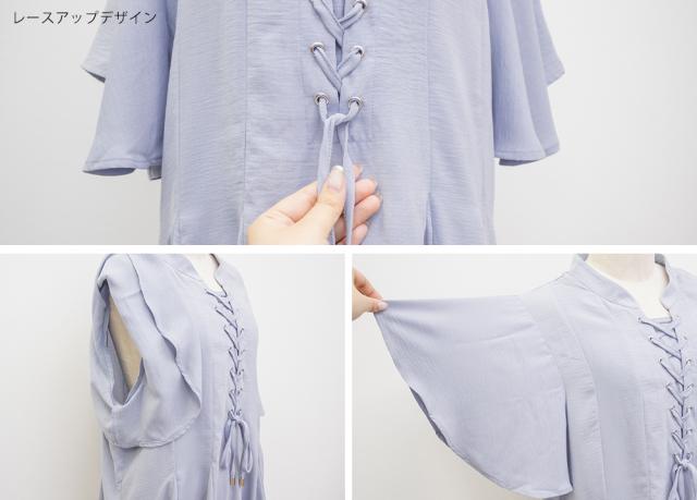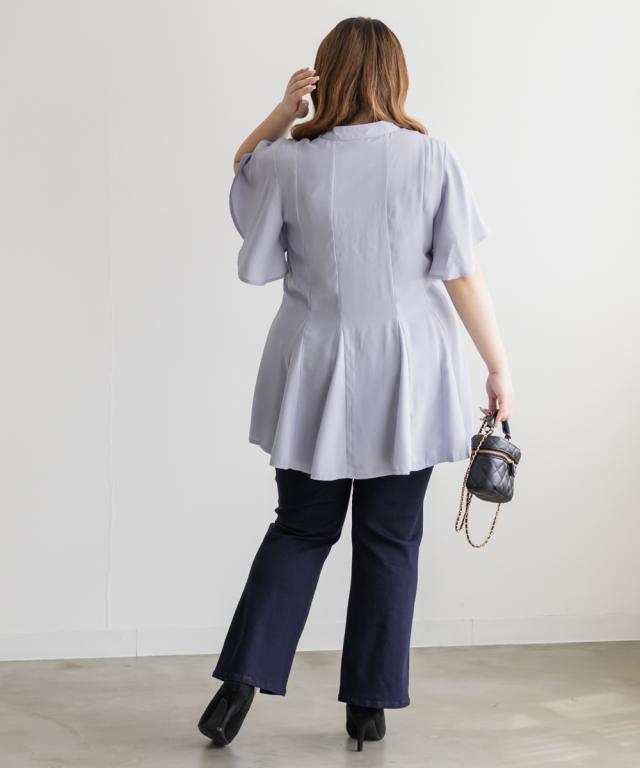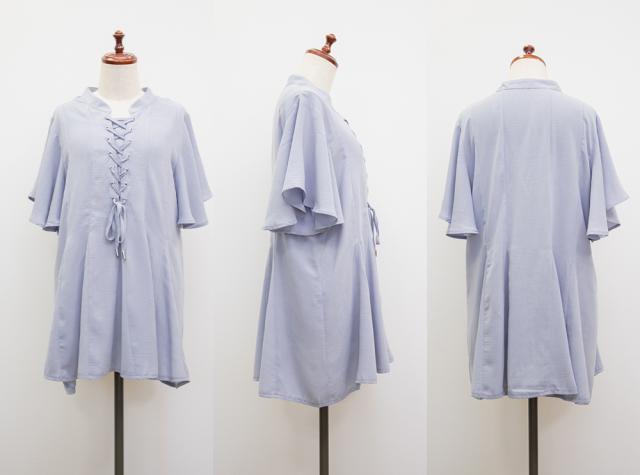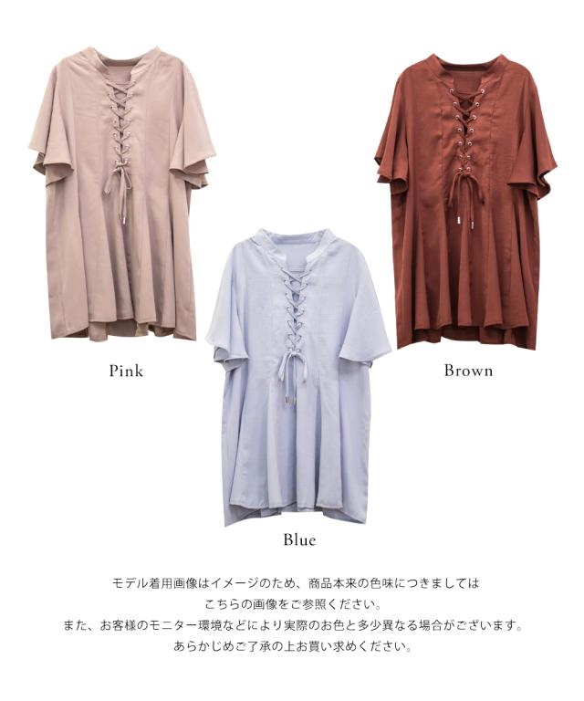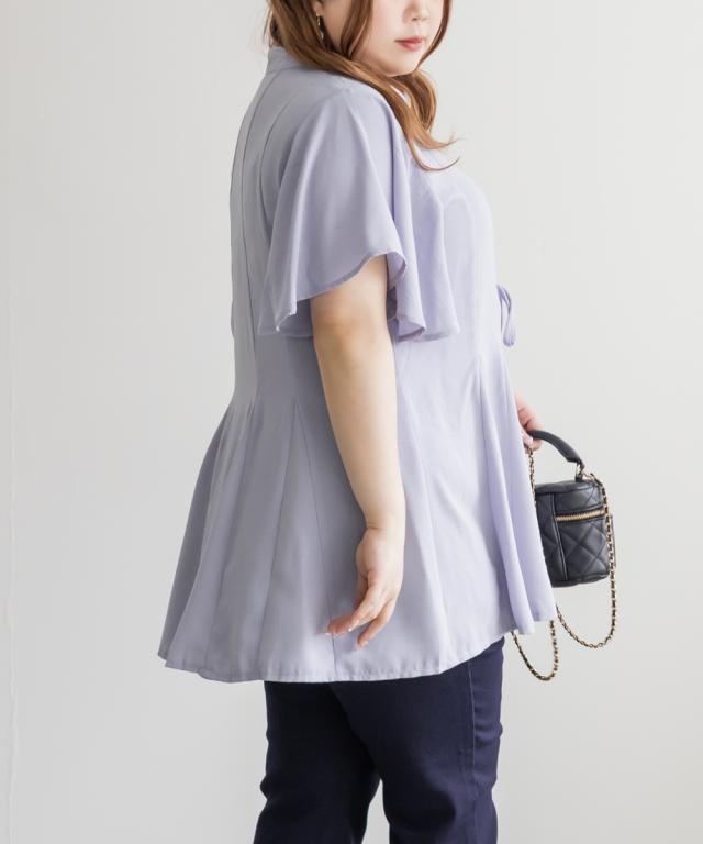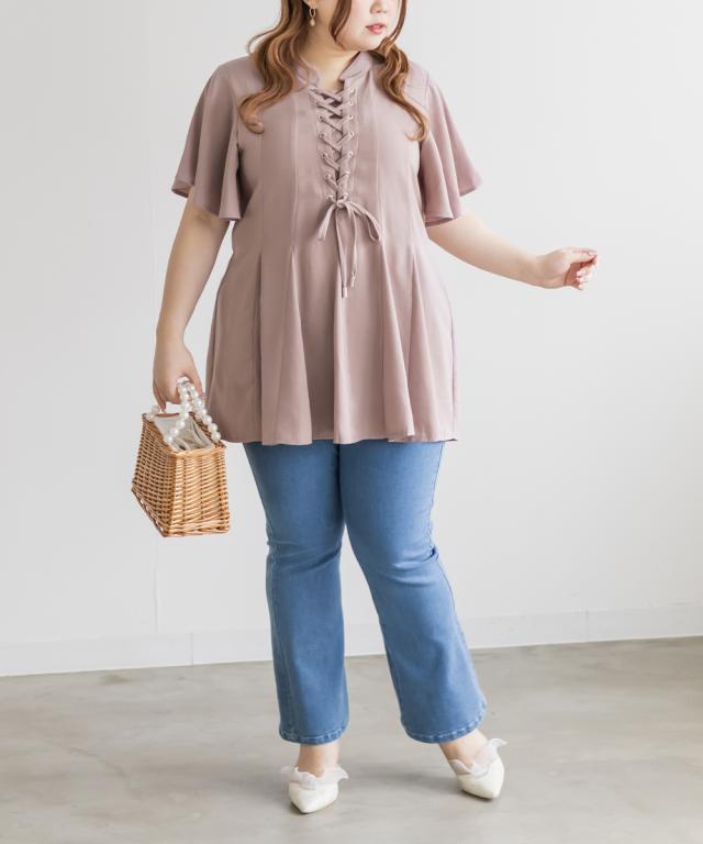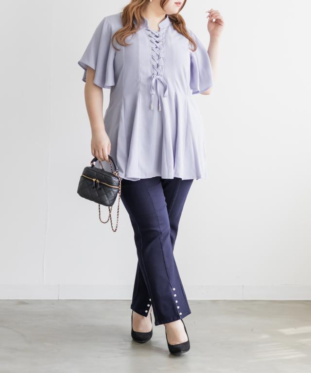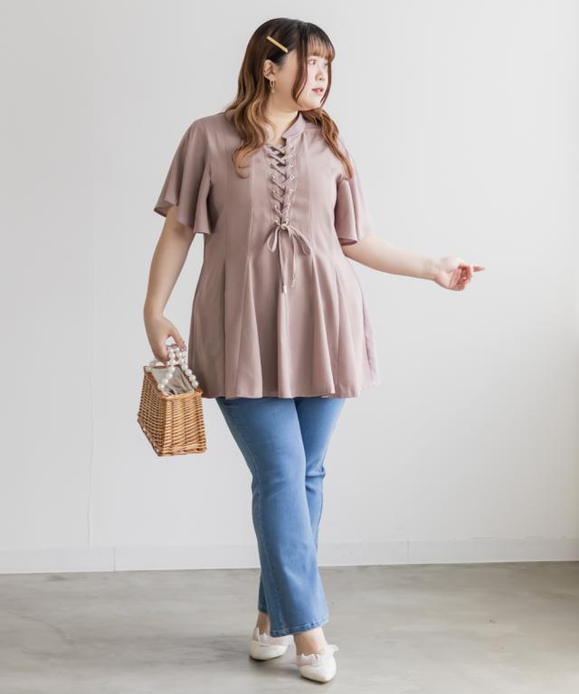 大きいサイズ/レディース/LL/3L/4L/CLETTEオリジナルレースアップフレアブラウス
