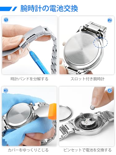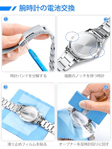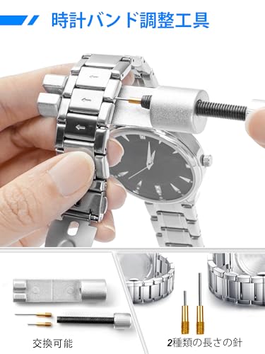 腕時計 修理工具セット 時計 電池交換 腕時計ベルト工具 でんち交換 キット 時計バンド / ベルト 調整工具 ピン抜き工具 腕時計の裏蓋オープナー バネ棒外し 取扱説明書 (英語版)