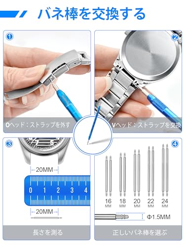 【ブレスレット取り外しツール】ウォッチ・ブレスレットの取り外しや交換に加え、ウォッチ・ピン・ツールは使いやすく、別途定規を探すことなくピンの長さを測ることができます。