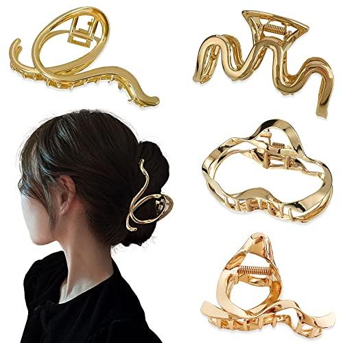 ヘアクリップ 金属スタイル ヘアアクセサリ 大きめ フランスクリップ おしゃれ 髪留め ヘアクロー ポニーテールホルダー ヘアアクセサリー 髪飾り 韓国風 シンプル 贈り物 多用途 通勤 オフィス レディース用 幾何学 ヘアクリップ 後頭部用 (4種類のサイズ)