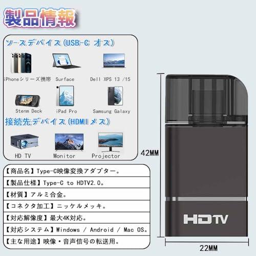 USB C HDMI 変換アダプタ 4K@60Hz [Thunderbolt 3 / 4] タイプC 変換コネクター USB C端子からHDMIメス Macbook Pro/MacBook Air/iPad Pro/iPhone15 16/Pixel/XPS/Galaxy などに対応