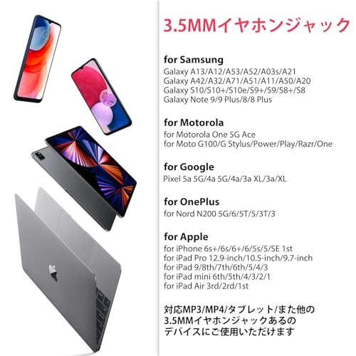 幅広いの互換性:弊社の有線ヤホンは標準な3.5mmのメッキプラグを採用、対応iPhone 6/6s/plus/se/iPad/iPod、対応Oppo Reno9 A/Reno7 A、対応AQUOS sense 8/sense 7/sense 6S/sense5G/wish3/wish2/wish、対応Sony Xperia Ace III/Ace 3/Xperia 10V/10 IV/10 III/5 IV/5V/1V、対応Moto g24/g13/g32/g31/g52j/g53、対応Xiaomi/Redmi、galaxy、対応PS3/PS4、MP3/ MP4プレーヤー、ノートパソコン、スイッチ、PCタブレット端末などの3.5mmオーディオデバイス。(注意事項:※デバイスの互換性が異なるため、一部分のノートパソコンでは音量調節コントローラーが反応しない場合がございます。ご了承ください。)