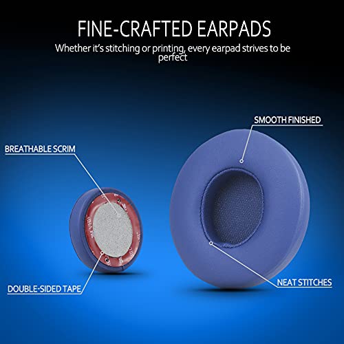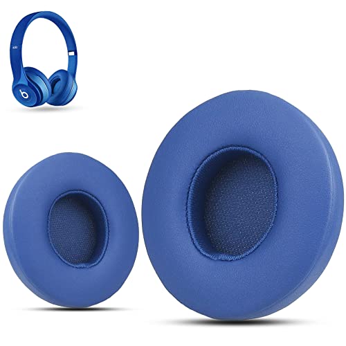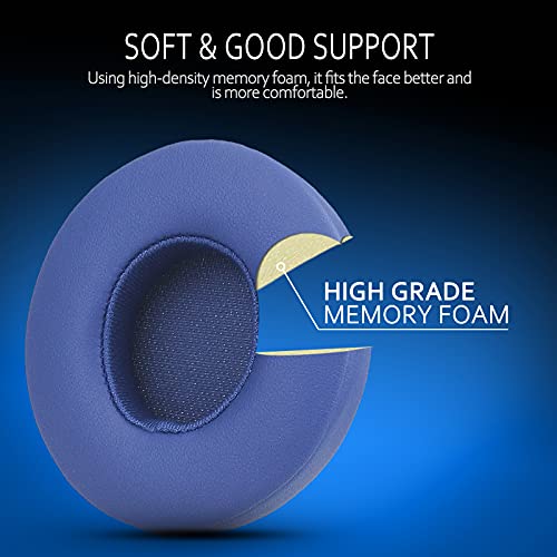 Beats Solo 2 & 3 ワイヤレス 有線 ヘッドフォン イヤーパッド イヤークッション プロテインレザー メモリーフォーム キット付き 非常に快適 取り付け簡単 ブルー 代替品 互換品