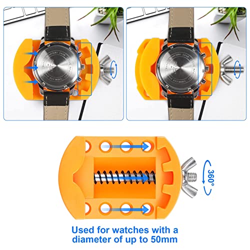腕時計 電池交換 工具 時計 裏蓋オープナーを回転させると時計カバーが開きます 腕時計 裏蓋外し ウォッチオープナー 時計固定ホルダー ピンセット 取扱説明書 (英語版)