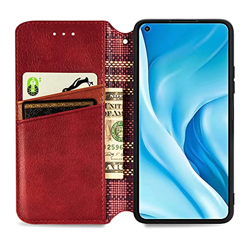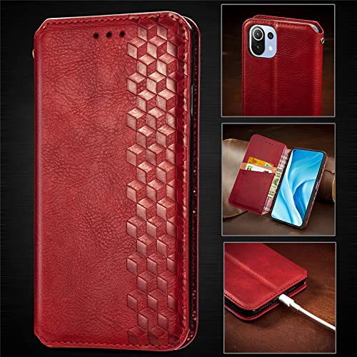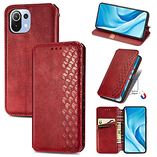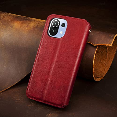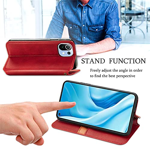 Xiaomi Mi 11 Lite 5G ケース 手帳型 PUレザー カバー 耐衝撃 内蔵マグネット開閉式 スマホケース ポケット スタンド機能 便利 ストラップ同梱 ファッション携帯ケース(レッド)