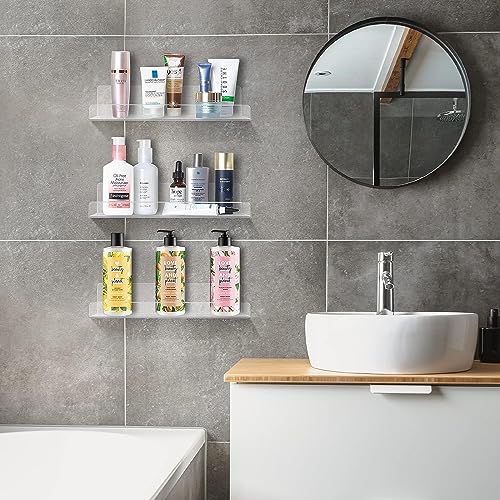 【収納力も抜群】透明タイプのウォールラック、飾りと実用的な収納を兼ね備えています。思い出の写真や、雑貨を飾ったり、CD、調味料や洗剤などを収納したり使い方色々です。透明ですので、まったく違和感ありません。