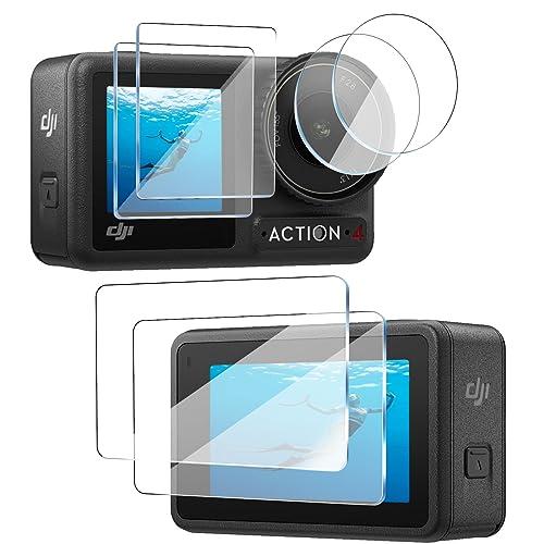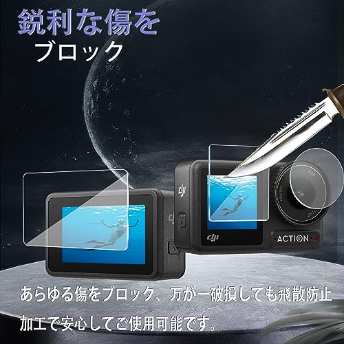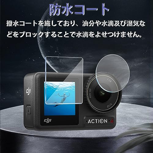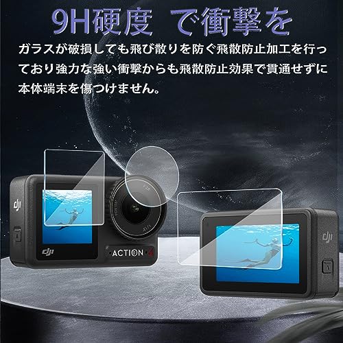 DJI Osmo Action 4 ガラスフィルム (2枚入) + ガラスフィルム (2枚入) + カメラフィルム (2枚入) 超薄型 硬度9H 指紋防止 保護フィルム 飛散防止 耐衝撃 気泡ゼロ 液晶フィルム