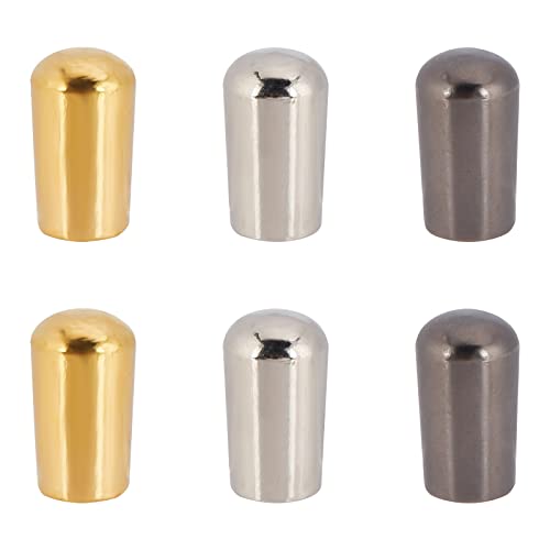 トグルスイッチノブ トグルスイッチ 2サイズ 3色 6個 内径3.5 / 4mm ギター エレキギターノブ スイッチ ブラス製 ギター3ウェイトグルスイッチノブ 先端キャップ カバー 防錆 耐久 エレキギター用