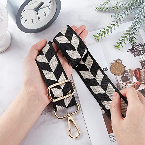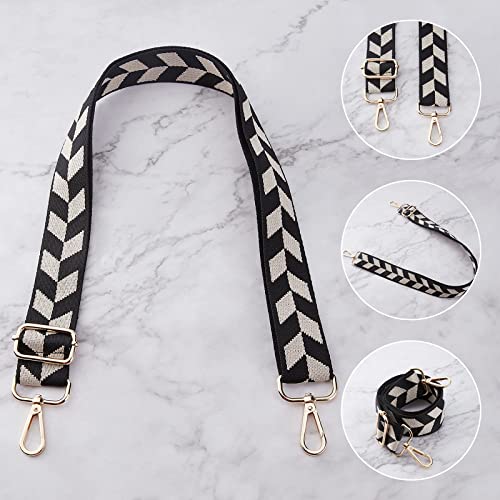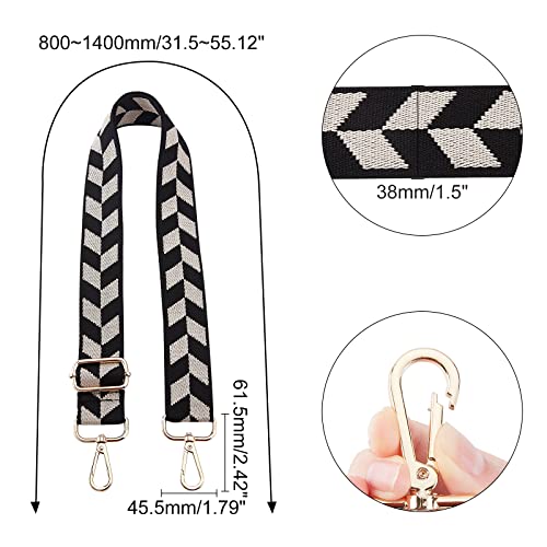 ショルダーストラップ 80 140cm 幅3.8cm ショルダーベルト コットン 黒と白 バッグ交換用 調節可能 交換ベルト 補修 ショルダーバッグ用 気分転換に チェッカー柄 ストライプ 金色のクラスプ