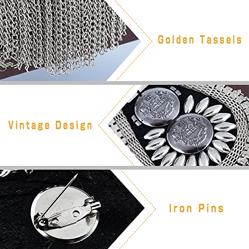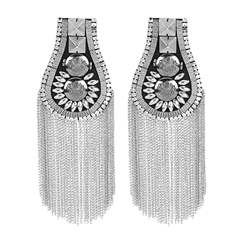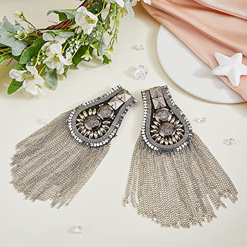 ショルダー バッジ プラチナ タッセル ピン付き ラインストーン エポレット プラスチック レトロ風 タッセルチェーン 肩章 ショルダーボード ショルダー デコレーション ジャケット メタル パンク フリンジ用 アイアン チェーン付き 6.4×19cm タッセルチェー...