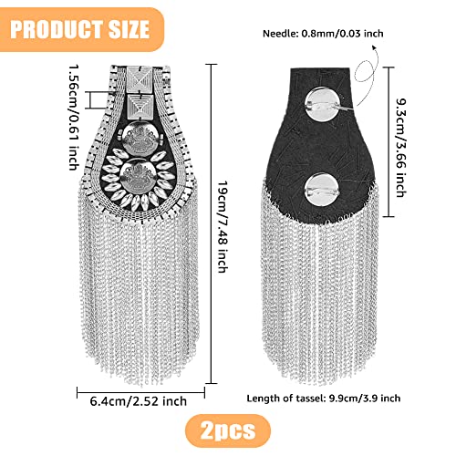 ショルダー バッジ プラチナ タッセル ピン付き ラインストーン エポレット プラスチック レトロ風 タッセルチェーン 肩章 ショルダーボード ショルダー デコレーション ジャケット メタル パンク フリンジ用 アイアン チェーン付き 6.4×19cm タッセルチェーン 肩章 ショルダーボード 2ピース
